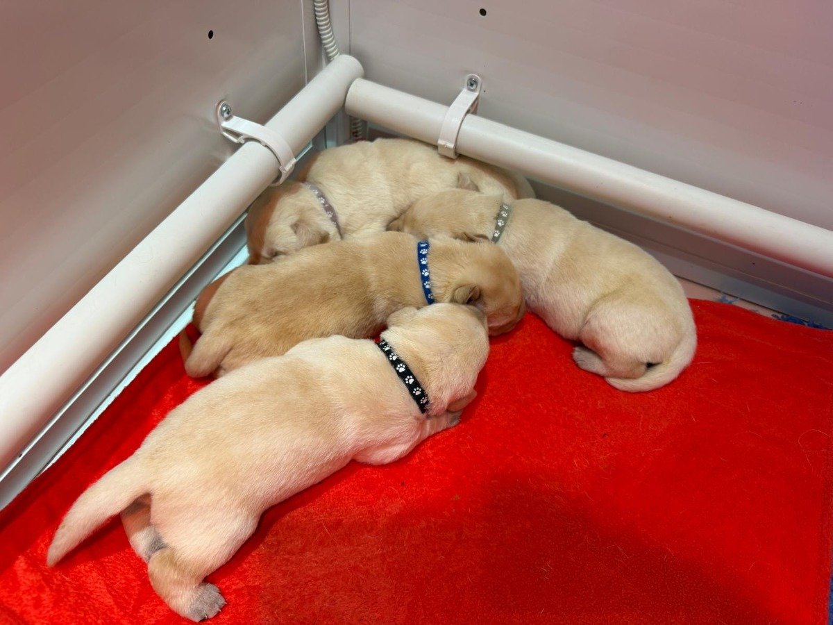 Litter of 4 – 3 males and one female. Both parents Kennel Club Registered and fully health tested, (elbows/hips/DNA tested). Strong lineage on both sides, available from kennel club website. Great temperament and show type Labs.
