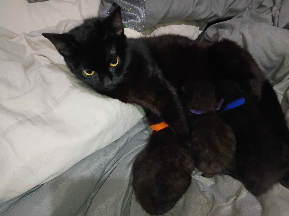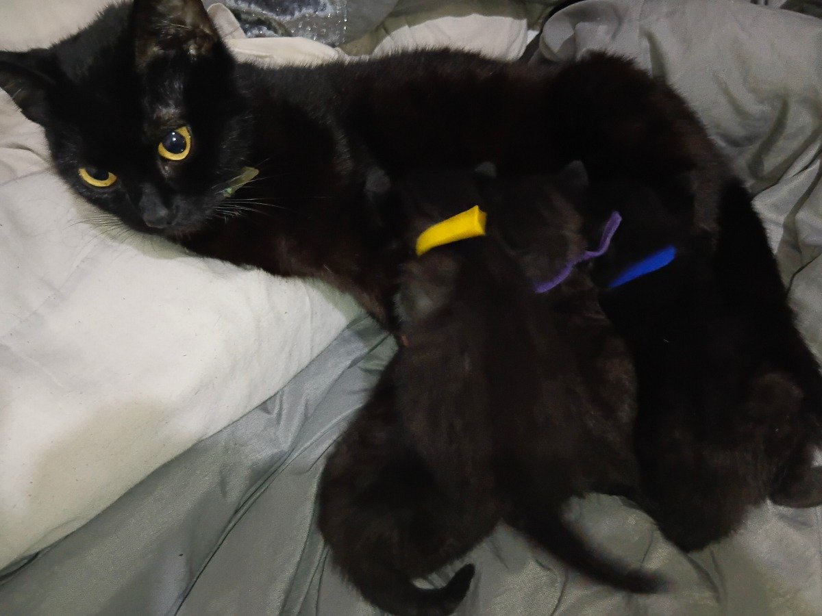 My beautiful baby girl has given birth to 4 beautiful girls who are looking for their forever homes 🏡 They are nearly 3 weeks old now and will be ready to leave from 7th December at 9 weeks old, they will be socialized with children and adults an other Cats i have, They already all have their own great personalities an like affection ❣️. They will be wormed and flead and fully litter trained.