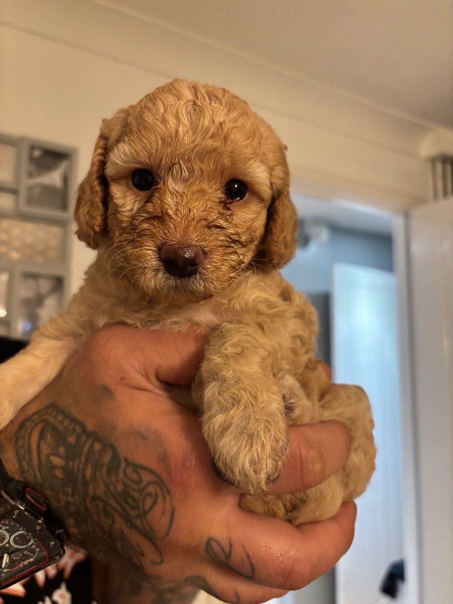 We have 7 beautiful puppies for sale. Mum is a small labradoodle and dad is a small cockapoo, both are family pets and can be seen. We have 2 black girls, 1 tan girl, and 4 boys.