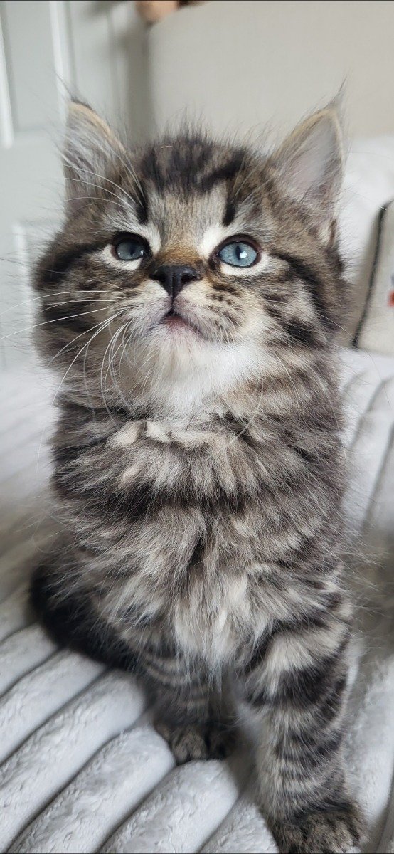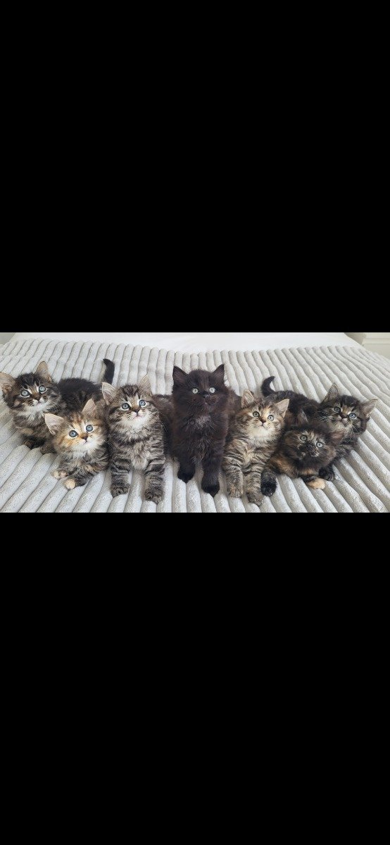 All the kittens are litter trained and eat wet and dry food . They are all extremely fluffy and affectionate. They do not shed and will grow with a gorgeous bushy tail. The mum is a Maine coon mix.