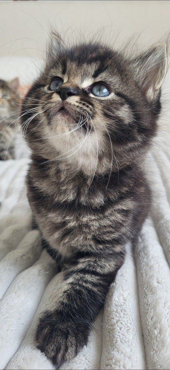 🤍🩶🖤🤍: fluffy baby faced tabby kitten-boy