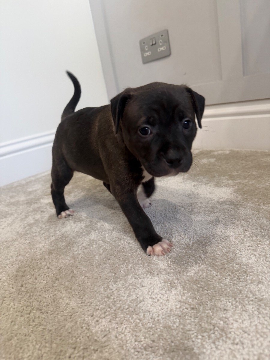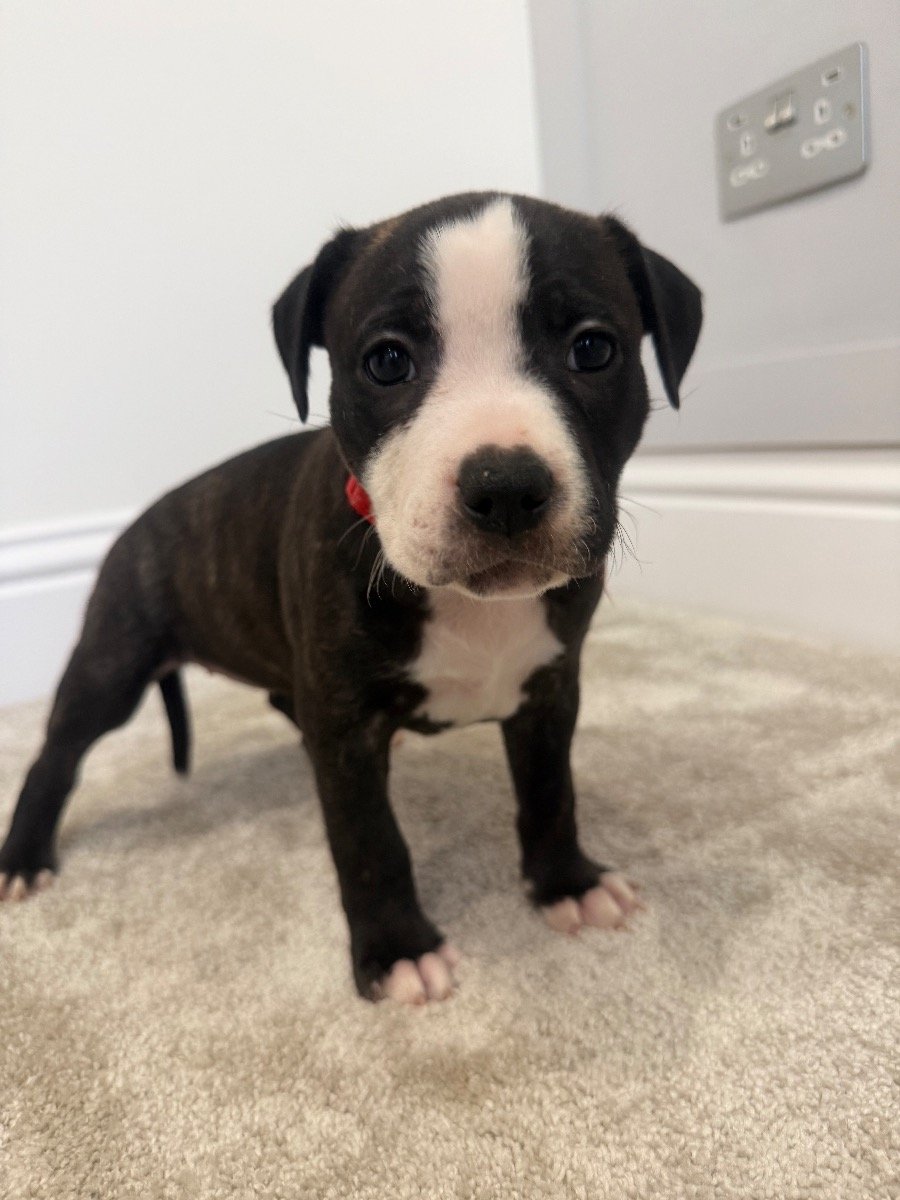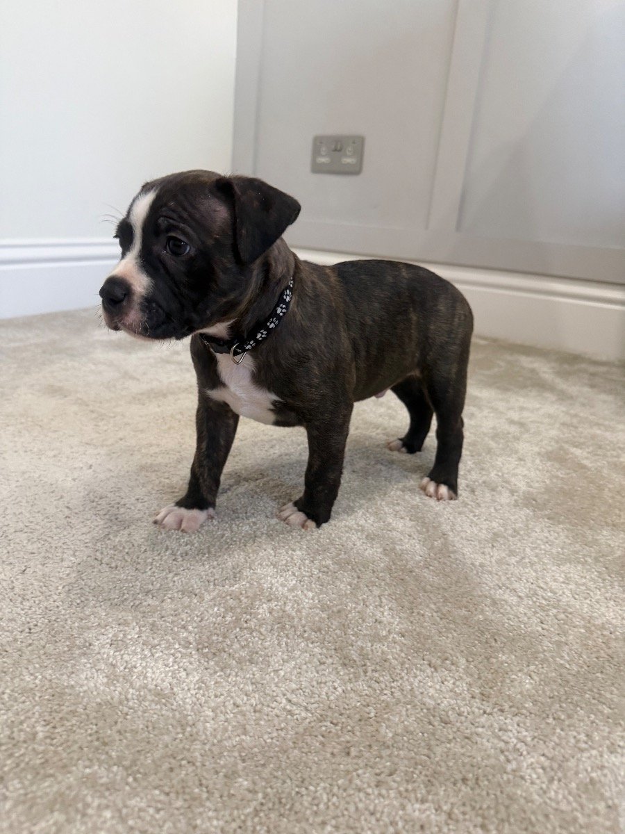 Beautiful Staffordshire Bull Terrier x American Staffordshire Terrier puppies available. Puppies are currently 6 weeks old and ready for reservation.