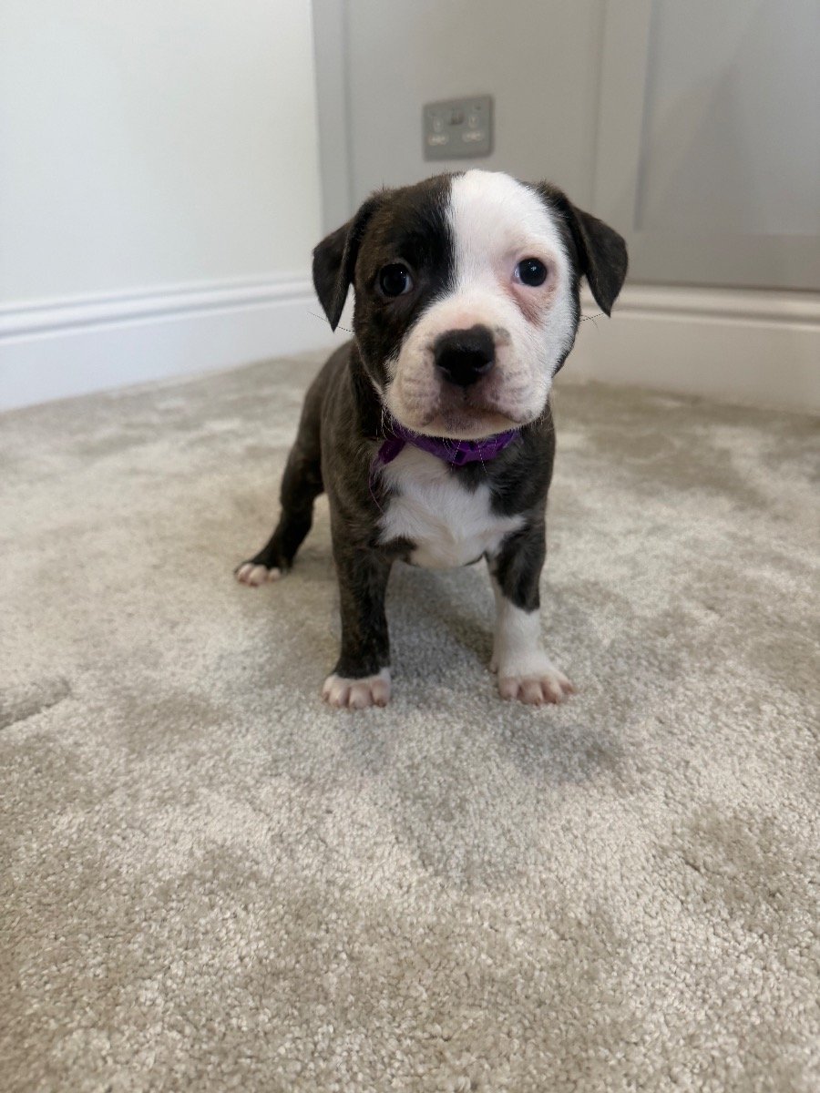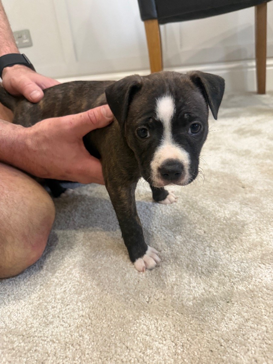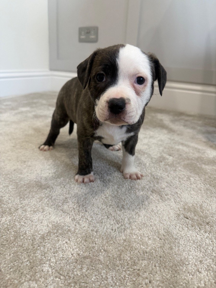 Beautiful Staffordshire Bull Terrier x American Staffordshire Terrier puppies available. Puppies are currently 6 weeks old and ready for reservation.