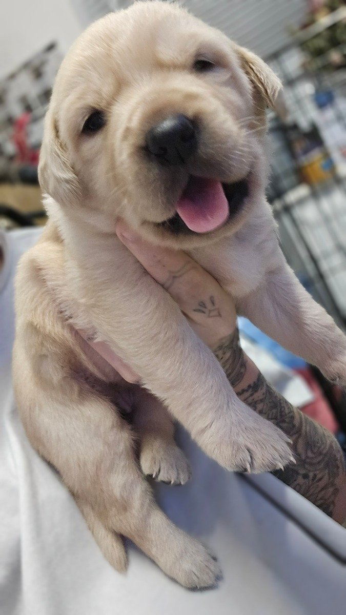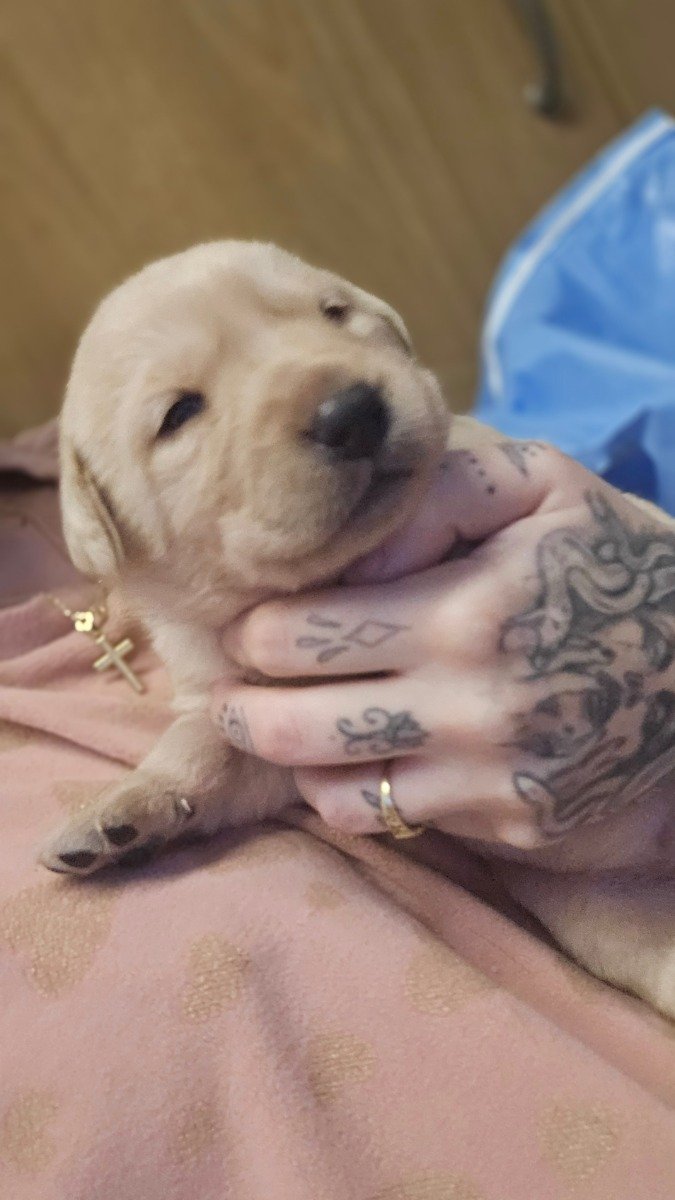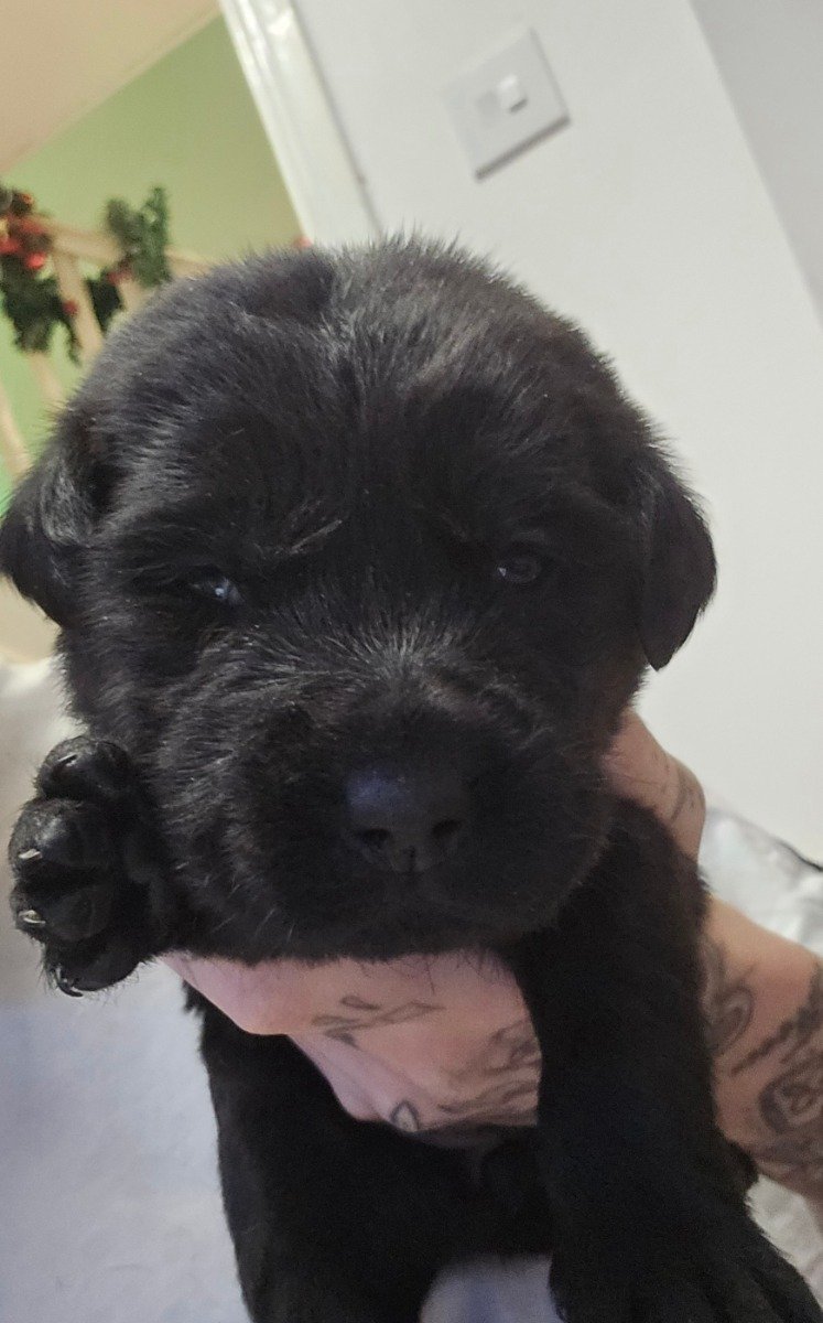 Puppies are currently 2weeks and 2days old , puppies can be seen with mum, puppies will have there first Jabs only and microchip 12th February 2026, puppies will be available after 12th February when they will be 8weeks old.
