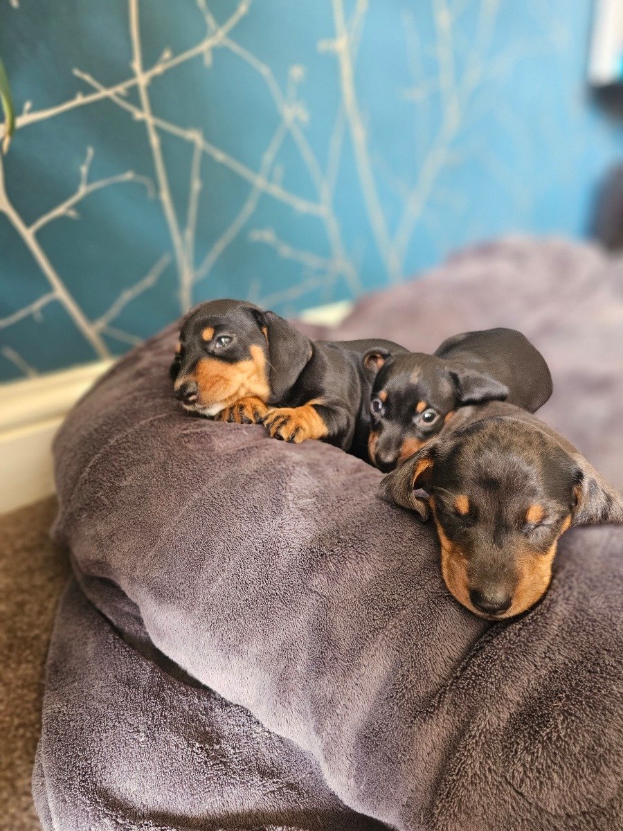 We are delighted to introduce our very first litter of beautiful Standard Dachshund puppies 🐾. Mum is our much-loved family pet and has the sweetest temperament – she can be seen with her puppies in our home.