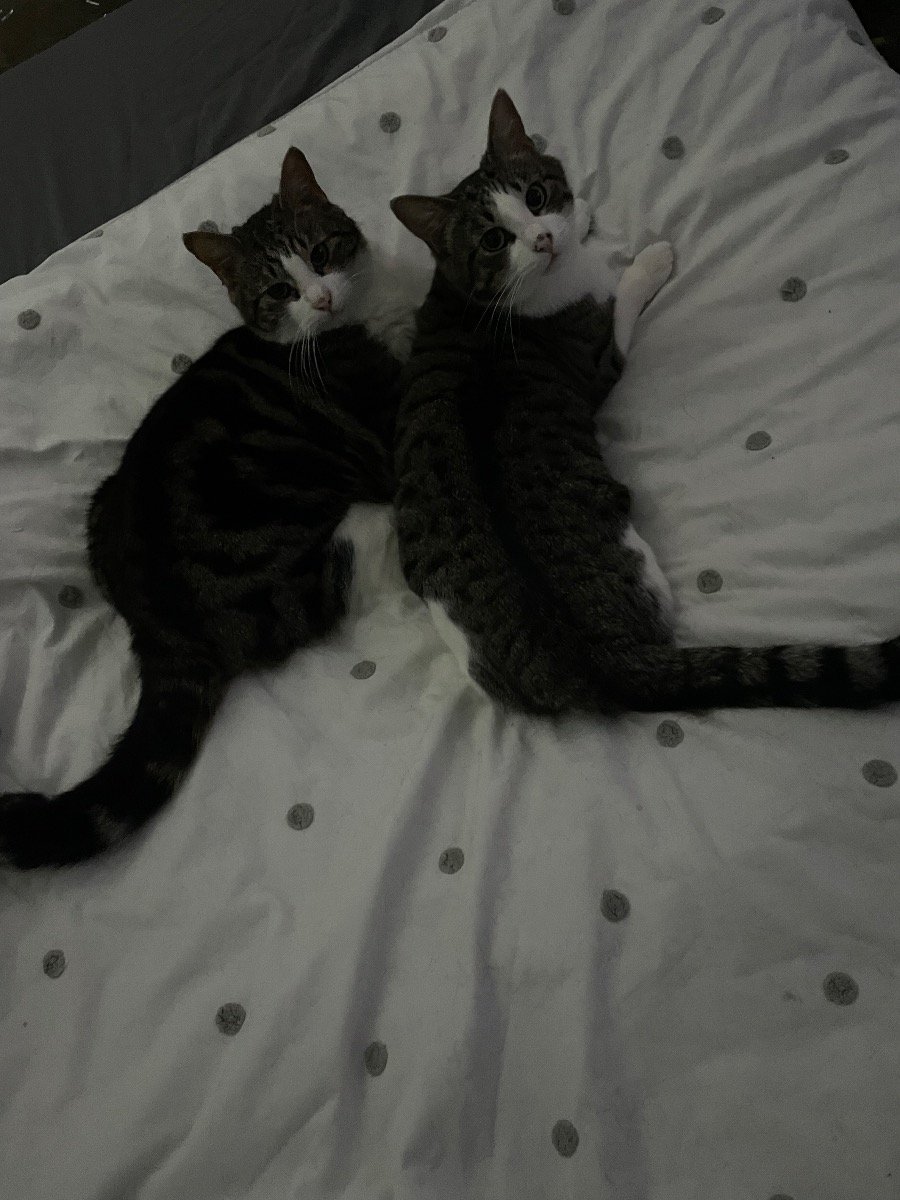 With a very heavy heart I have to find a new home for these two lovely boys. I have too many cats and need to rehome four of them to bring it back down to a more manageable amount. I really want them to stay as a pair as they are so bonded and are used to the company. They are playful, curious, affectionate and cuddly. They need a home with outdoor access, no small children.