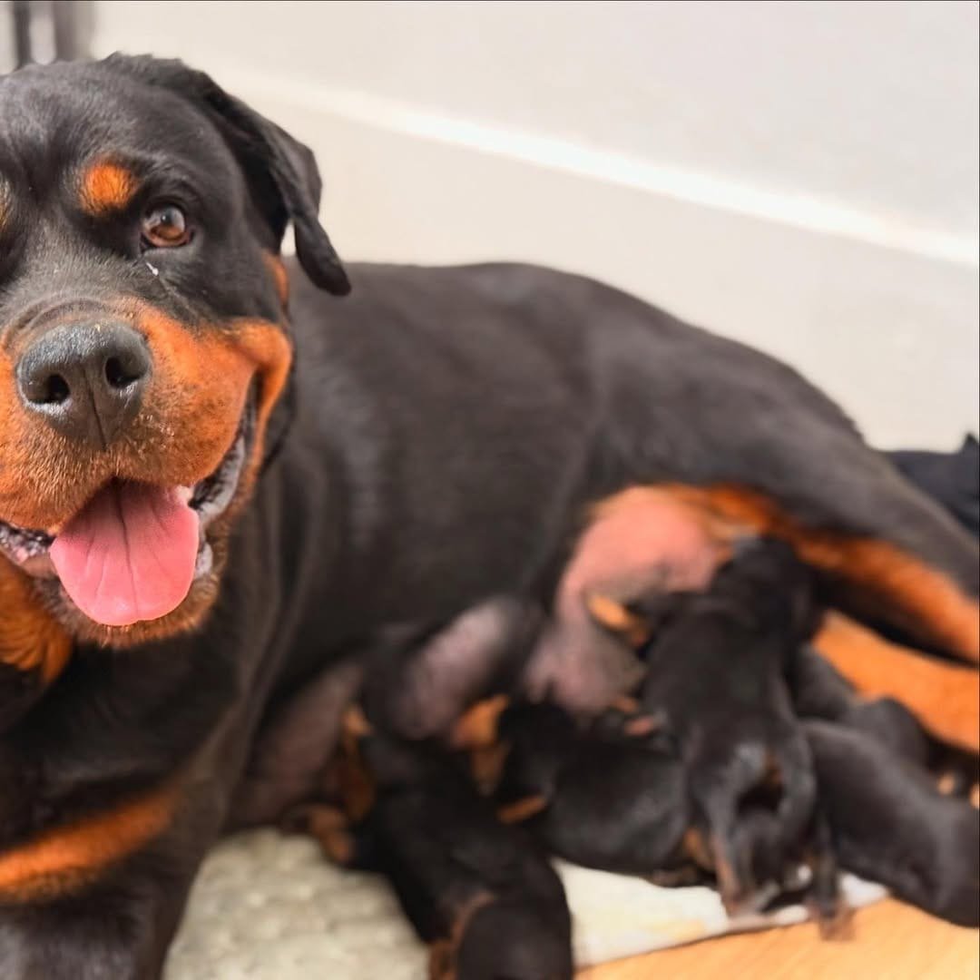 Our puppies are known for their strong build, classic markings, and calm, watchful nature. Whether you’re looking for a loyal companion or a protective family guardian, our Rottweilers are a perfect fit.