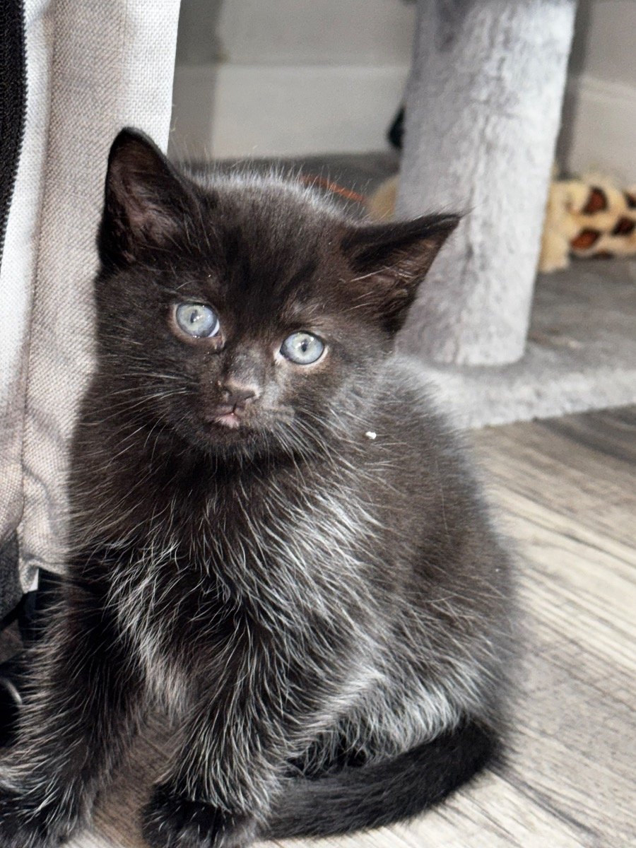 Beautiful male black with a silver skirt mum is Norwegian forest cat lovely nature boy is fully weaned and uses the litter tray fine