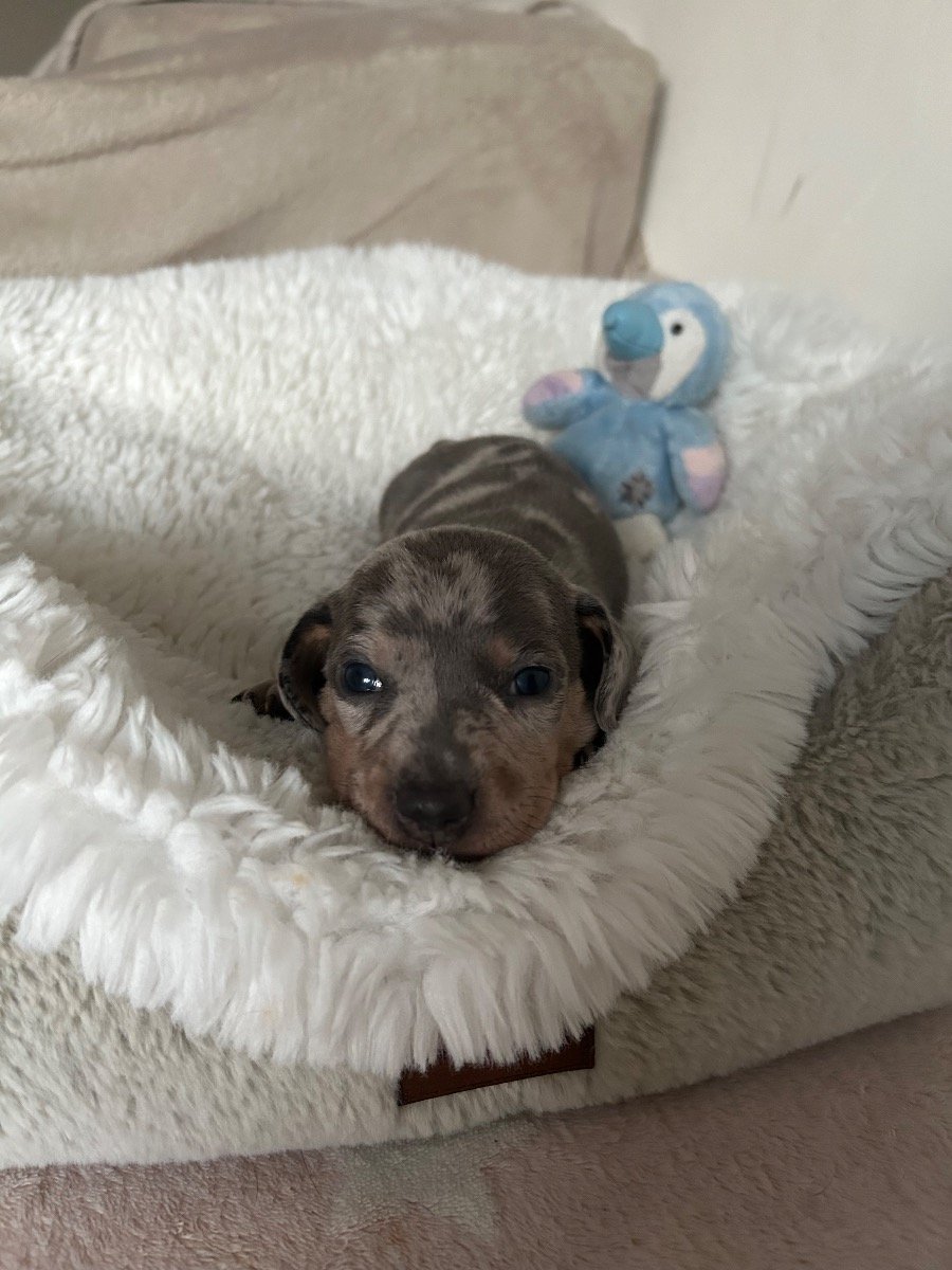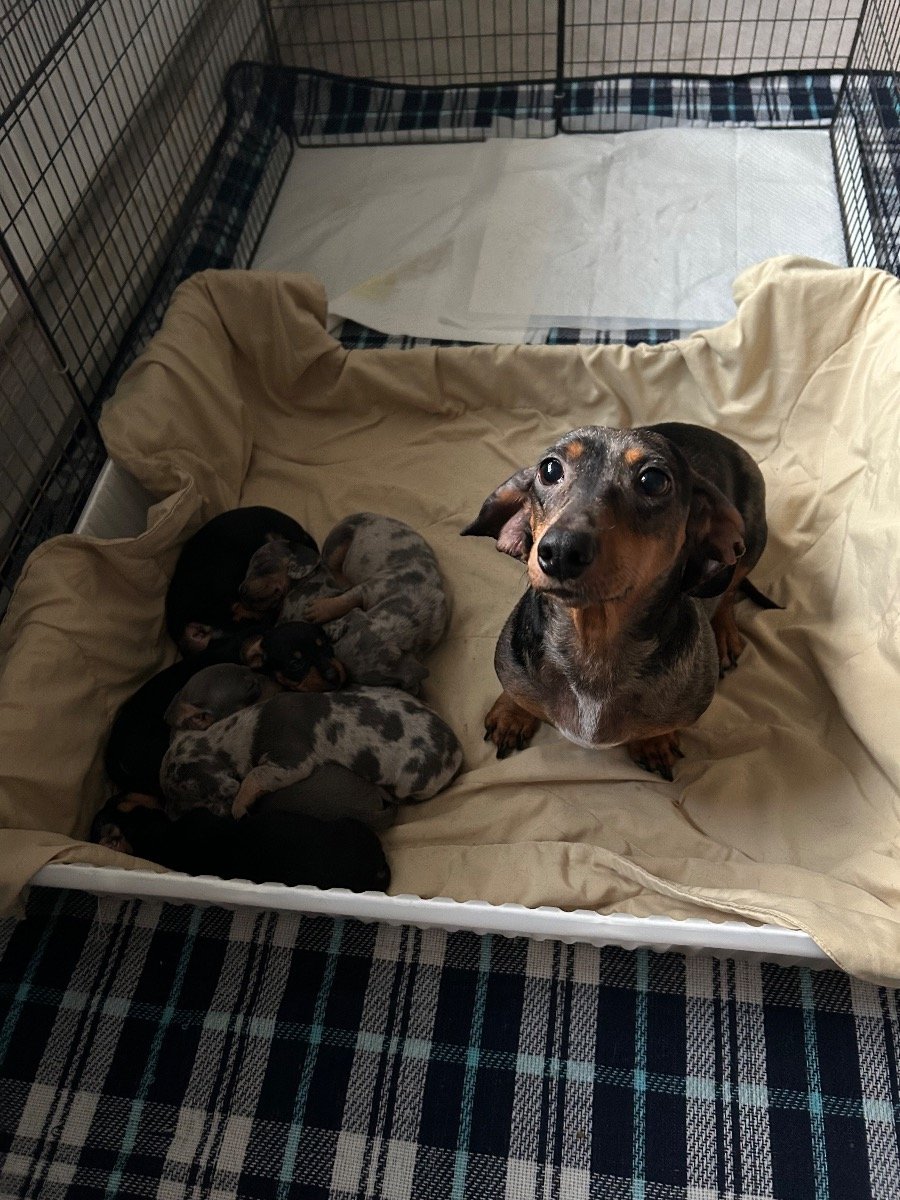 Our beautiful dachshund has given birth to a healthy litter of puppies, two many beautiful colours to mention, see photos. Raised in our child friendly home. These gorgeous puppies have been wormed at 2 weeks and will be wormed again at 4 weeks, 6 weeks, and 8 weeks before they ready to go to their forever home. They will also come vet checked and health checked by our vet. Also microchip