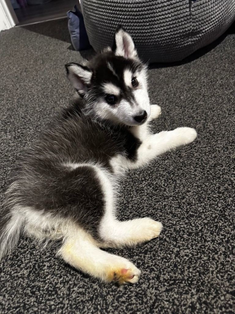 We are urgently looking to rehome our beautiful Siberian Husky puppy due to a change in our situation. My wife and I have both recently received PhD offers and work full-time, and unfortunately, we are unable to give her the time and attention she needs. We also have two cats, and they have not adapted well to her.