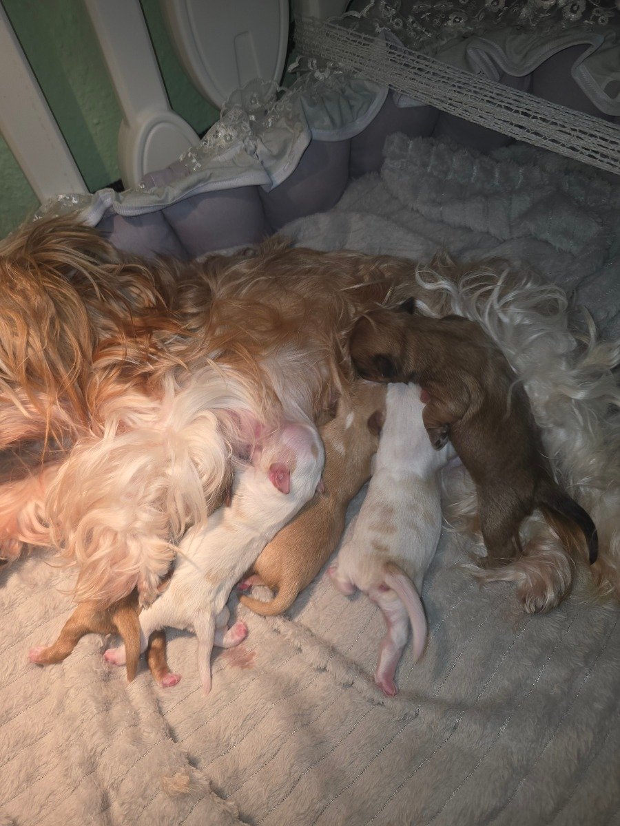 I’d like to introduce you to a litter of beautiful Yorkshire Terrier puppies. They were born on December 19th. There are two males and three females. The parents are our dogs: the mother is “With Ocean Pearl” and the father is “With Gold Golddust.” They will be ready for their new homes no earlier than February 18th, after vaccinations. They will leave us with full documentation: pedigree, vaccinations, microchips, and a veterinary checkup. They will also receive a layette, including food, toys, blankets, etc. We can issue invoices upon request. One male is “With Gold,” one male is “Oecan Pearl,” one female is “With Gold,” and two females are light gold with bright white markings. You can also visit our Facebook page.