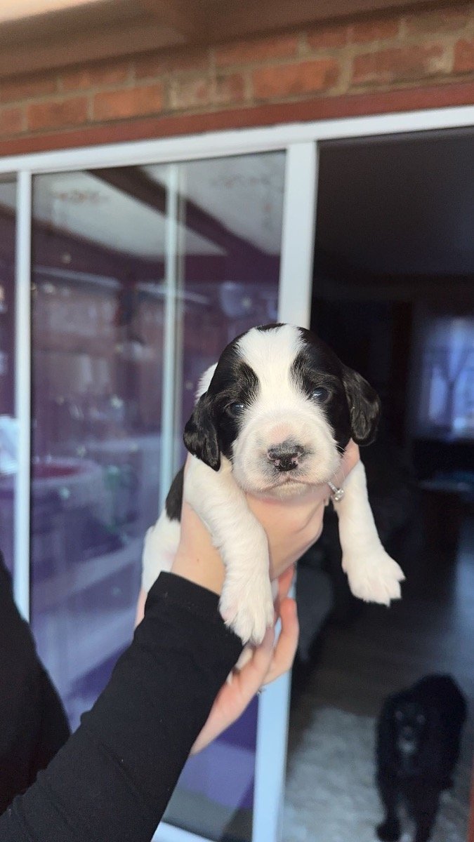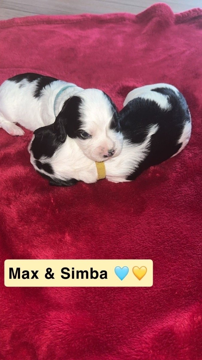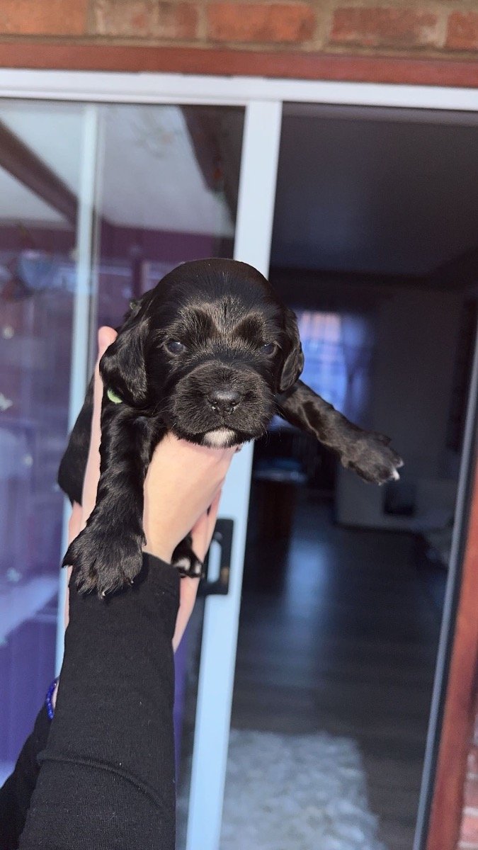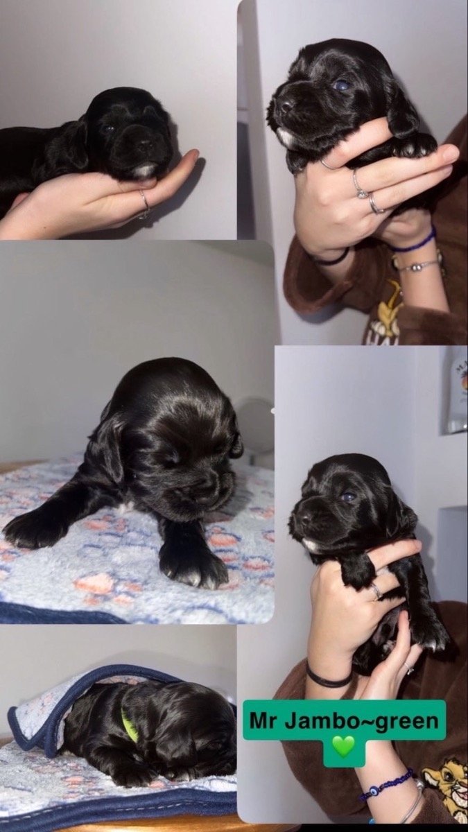 We are delighted to announce that our gorgeous working cocker spaniel Luna has delivered us an incredible litter of 6 working cocker spaniels, puppies are developing very quickly and are strong and healthy. Dad (Bertie) 🐾 Bertie is a fantastic stud dog from Ptarmigan Gundogs and he is a blue roan working cocker spaniel. He is a fantastic dog with a great temperament. Dad is health tested and his information can be viewed on Ptarmigan Gundogs website. Unaffected Eyes Gonioscopy Grade 0 Clear AMS, FN and prcd-PRA PP Tested Clear Hips 4:4 (Ankc) COI 11.1% Mum (Luna) 🐾 Luna is a black working cocker spaniel. She is an incredible dog who is very intelligent and very healthy we have had no issues. Luna is a wonderful family pet and the most perfect dog she loves walks and is always off the lead sniffing around, she has a great recall and is such a fun dog who is loved deeply by all of us. This is Lunas first litter and we are so proud of her, she has been the best mum to her litter of 6. Information about the puppies🐶🐾 Our gorgeous litter arrived on the 17th of January and they can be collected from 8 weeks, their second vaccination is already paid for and it is at 10 weeks so they can stay until they are 10 weeks and had both vaccinations unless you would like to have your chosen pup earlier, if you live in the area you can go to our vet and have it done yourself. Puppies will be used to household noise and lots of cuddles from us🩵🩷🐶 The puppies will leave us.. *microchipped *1st vaccination *wormed at 2,5,8 weeks with panacur for puppies *they will have a blanket with their mums scent to reassure them *a lovely little toy *checked by a vet Our 2 black boys are available for £1100 2 white boys are £1150 and our two girls are available for £1200 with a £210 pound non-refundable deposit which is required to select your puppy of choice. The balance will have to be paid before the day of collection. Viewings are very welcome, i will ensure to send you weekly pictures and videos of how your puppy is developing and growing. Puppies can go to their forever homes from the 14th of March The puppies are all becoming very intelligent cocker spaniels and starting to get playful 🐶❤️ Luna (hot pink girl)~ AVAILABLE Max (blue boy)~ AVAILABLE Nala (light pink girl)~AVAILABLE Coco ( red boy) ~ RESERVED Simba (yellow boy)~ AVAILABLE Jambo (green boy)~ RESERVED If you have any questions or would like any pictures of certain puppies please message me on. +4️⃣4️⃣ 7️⃣3️⃣0️⃣8️⃣5️⃣2️⃣5️⃣2️⃣8️⃣1️⃣ Mum can be seen with puppies, if you can provide a loving home for one of our puppies please get in touch.