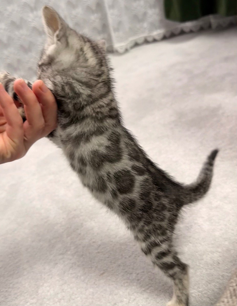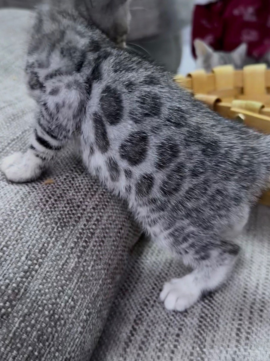 Each kitten is a combination of wild looks and warmth. Their coloring, with contrasting spots and stripes reminiscent of a leopard, and their behavior is at once that of a small predator and a plush friend 🐾