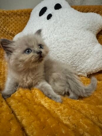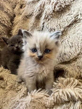 2 out of our 5 beautiful kittens are still available and ready to leave 20/09/2025 at 7 weeks old. Their mam is a British blue shorthair and dad a mink blue point ragdoll. The kittens are litter trained and weaned on wet and dry food. They are up to date with worming and will be flead. They are very confident, love being handled and adore a cwtch. As we have a very active household it would not be ideal for them to go to a home without another cat or children. Ideally someone who is passionate about cats and knows how to care for them. It’s a very big commitment. They enjoy company and a shoulder to climb and sleep on.