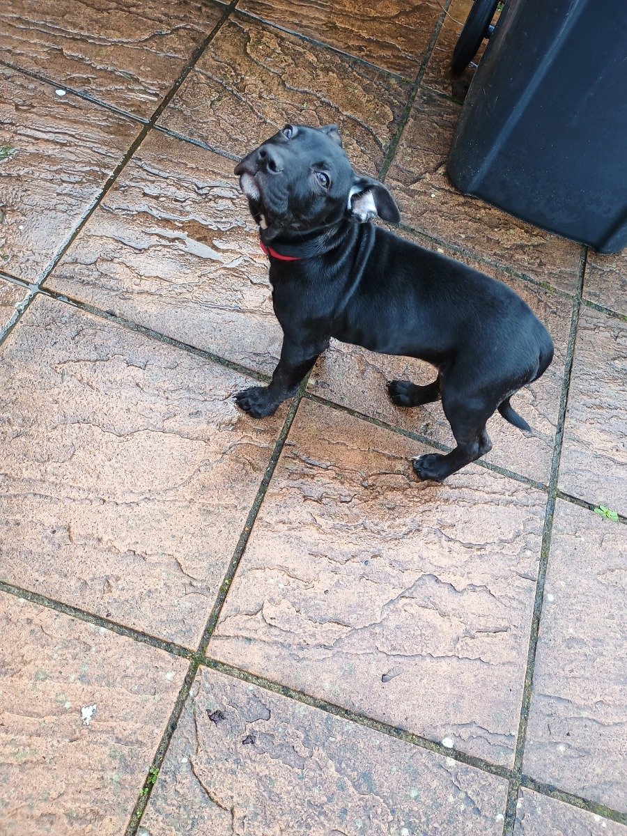 Meet Callie – Lovely 12 week old female puppy staff. Ready to leave desperately needs rehoming due to change of circumstances and personal health issues. She is a happy healthy pup lovely temperament, sad to see her go but wouldn’t be fair as we won’t have the time a pup needs. Purchased from breeder mum and dad both staffs. Can supply crate, toys etc. price negotiable for right people just want her to go to right home. Not asking for what we paid.
