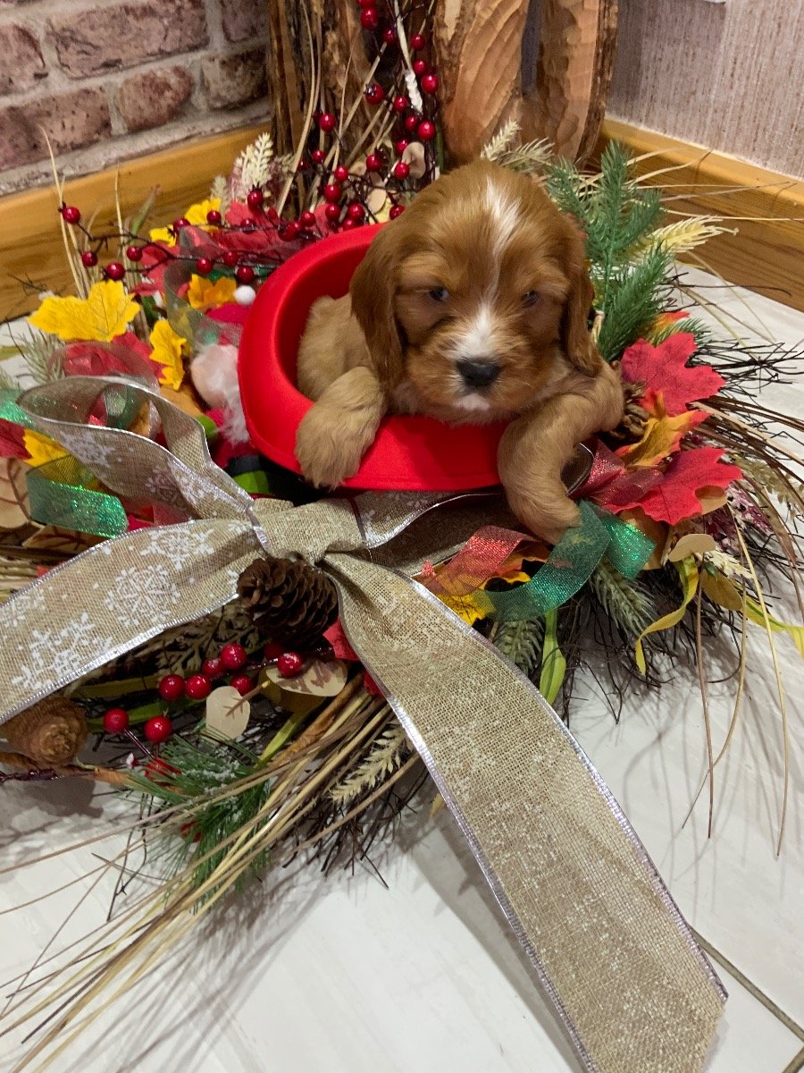 All our puppies have been HEALTH checked by our Vet & are all very healthy, please see pictures for markings & colours or please come & view them to be sure you choose the right puppy for your selves, they are happy little puppies, mum is a very lovely gentle cocker poo & Dad is a kingCharles Cavalier also very laid-back & gentle both parents are great with children & adults they just love to be fussed ,
