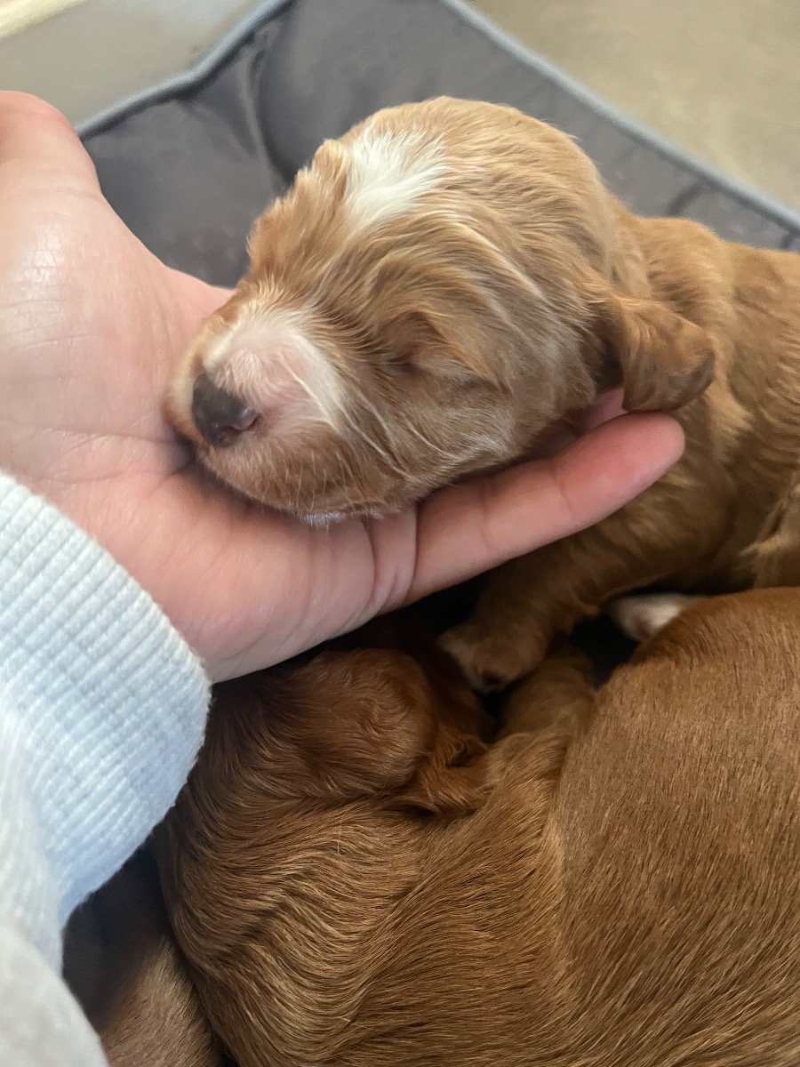 Both parents are purebred Cockapoos with lovely temperaments, and the puppies are social, affectionate, and used to being handled.