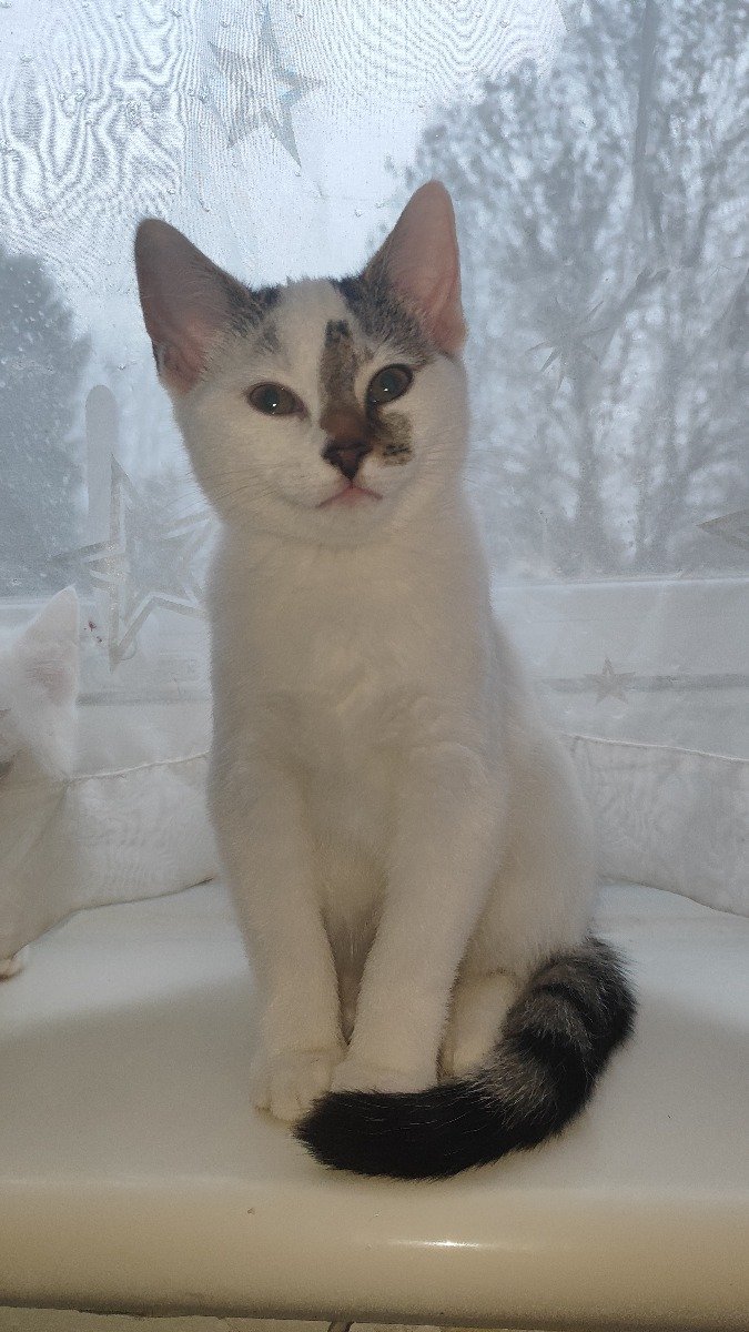 A very affectionate and intelligent girl. She grew up in a caring and comfortable environment. She was born to a domestic cat and is litter-trained.