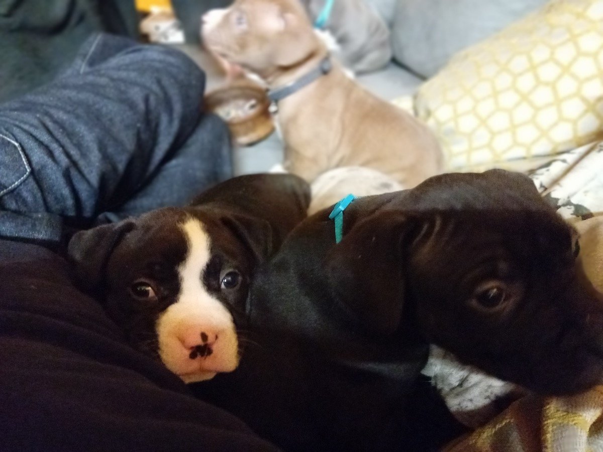 Looking for a great home to house these puppies 2 available one grey w white patches and one black w white patches, excellent temperament not aggressive at all mother and father of pups are chill house dogs not aggressive at all in any way, with the right training the pups will turn out the same…