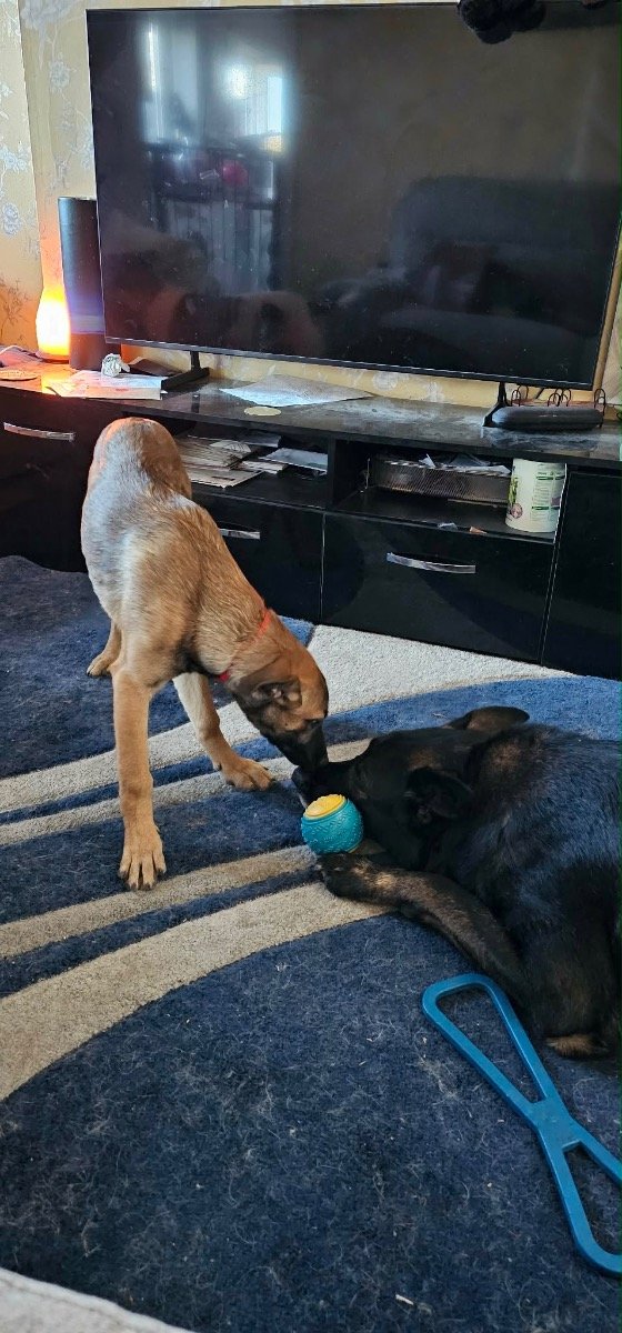 Mum is collie X lurcher, she loves to constantly play with her toys and her favourite toy of all time is balls