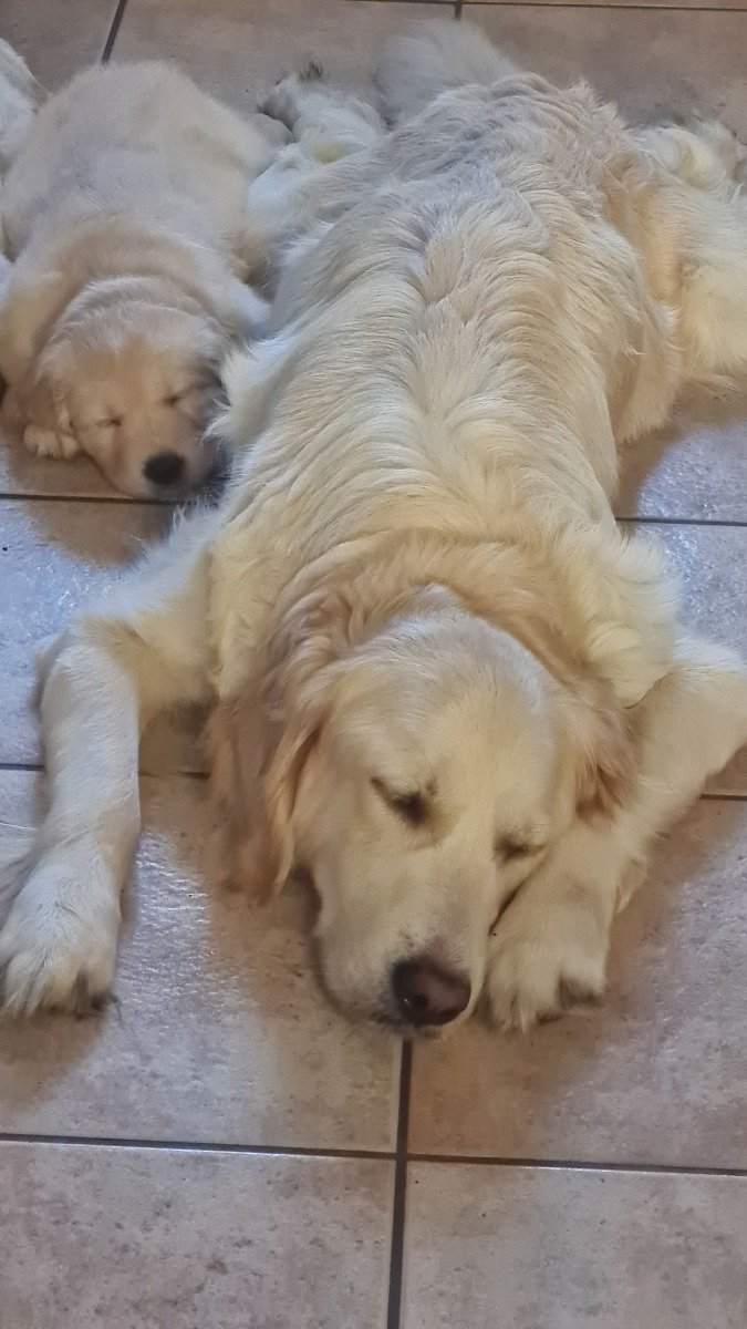 About the parents: Mum is Golden Retriever KC registered. This is her first litter and she is devoted, gentle mother. She is excellent with children and other animals and comes from a three generation pedigree.