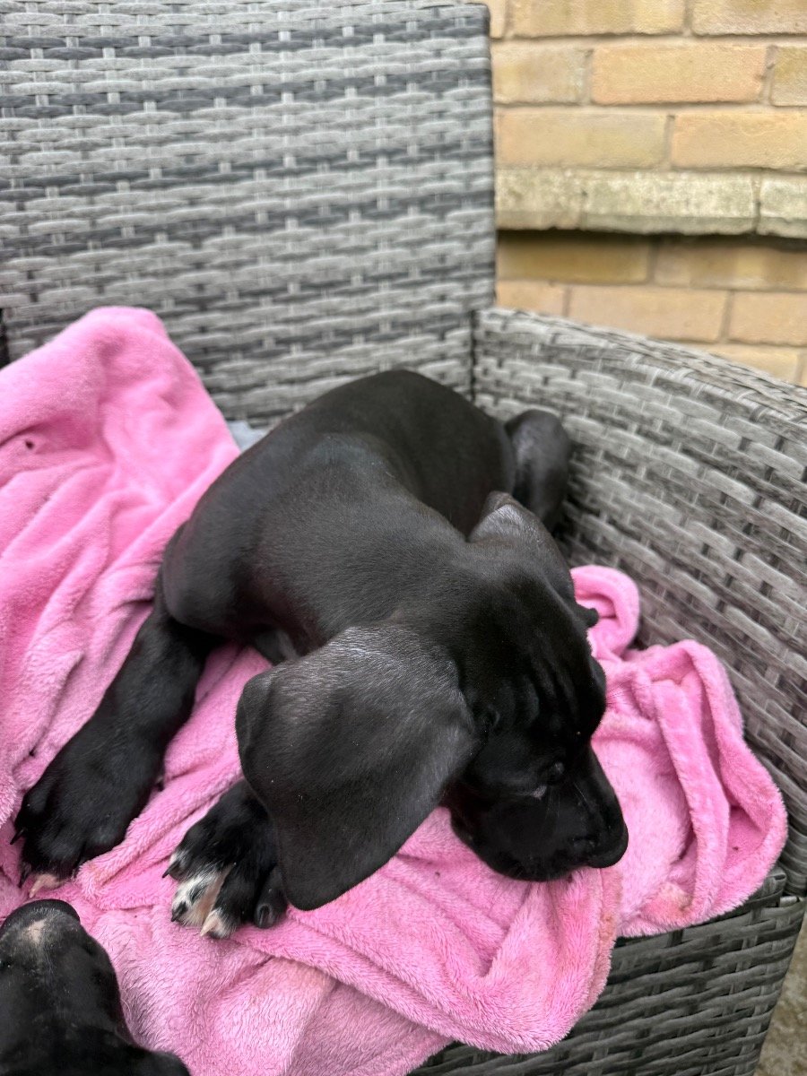 We have been blessed with 9 healthy gorgeous and gregarious pups from our family pet Mia who is a first time Mum. The pup currently 3 weeks old so not best at sitting still for photos! We have 3 little girls and 6 bruiser boys in probably the best selection of colours currently available today. They have been bred and raised lovingly at our home near Cambridge with well behaved cats, animals plus badly behaved children! The puppies mum is much admired locally and is a stunning very well trained And loving loyal girl. We are not breeders,this will be our one and only litter. As you probably know the first litter produced is generally the best that a mum will give. They have all been vet checked, vaccinated, wormed and micro chipped. If your looking for a genuine honest litter, bred with all the best intentions with the hope of finding one permanent loving home, then please don’t hesitate to contact us. No breeders need apply. Many thanks