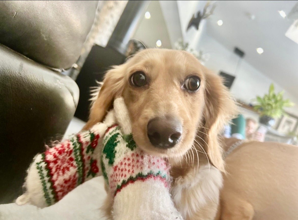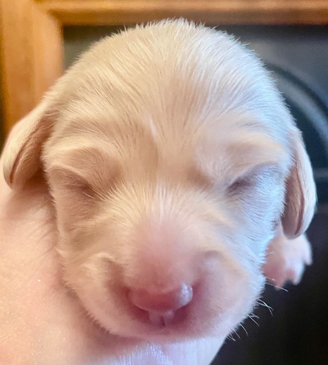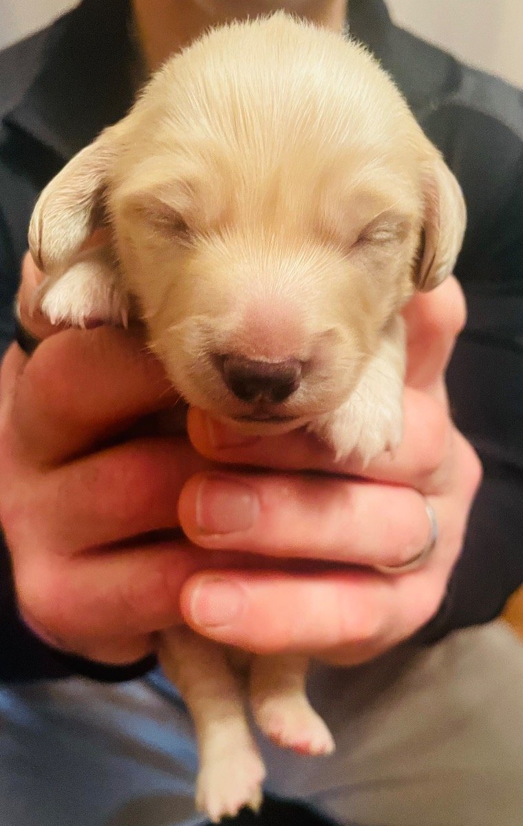 KC cream miniature long haired dachshund