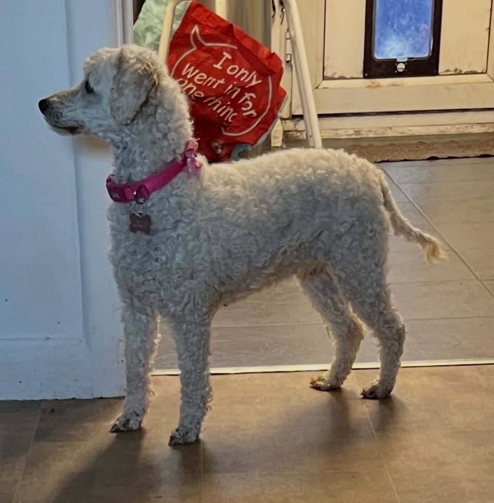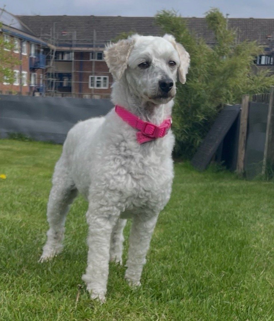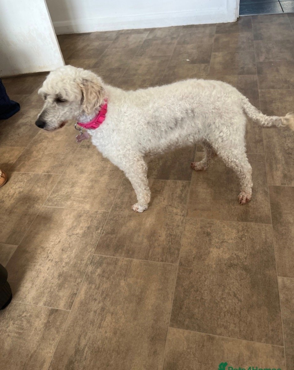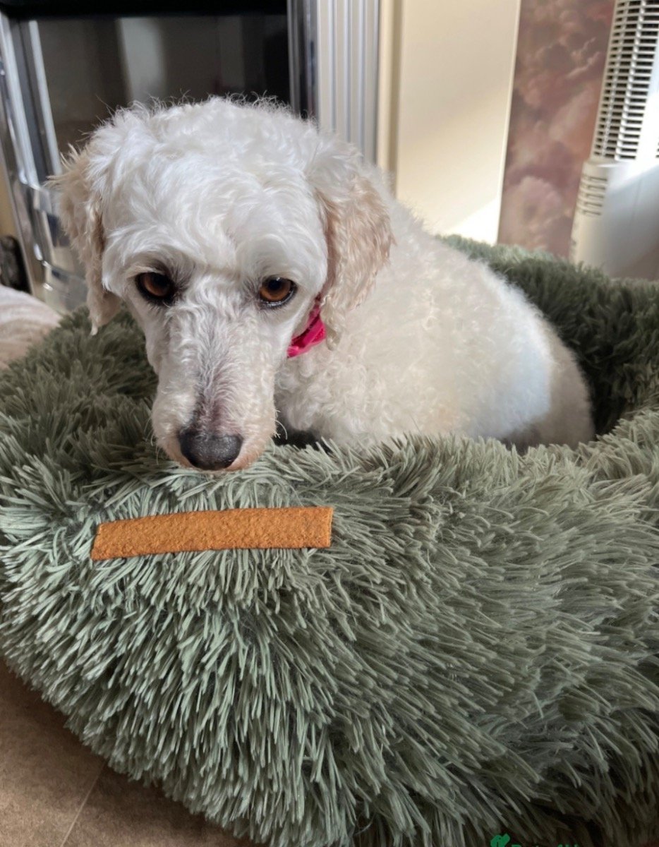 This is Flossie, she is 6 years old & will be 7 this year. she is a beautiful warm, loving caring dog that likes to lounge around, but also likes to be outside, she loves the outside. She follows you everywhere takes a few minutes to get used to anyone new but once she feels safe she will be fine . She is excellent in the car, likes to have her head out the window, loves her walks, her recall in good & she walks on & off the lead very well. She has NOT been spayed. She’s a full KC registered dog I have all her paperwork,,she can be left for a couple hours but would need someone around in the day as poodles do get lonely. She’s good with other dogs and cats & children of school age ( I don’t know what’s she’s like with babies / toddlers but I honestly think she’ll be fine). She up to date with her flea and worm treatment. She’s an amazing dog who would be better settled either on her own or with another dog(s) of the Same size or slightly bigger but not smaller. Any questions please ask & please expect to be asked questions as she won’t got to anyone and you must have a fully enclosed garden