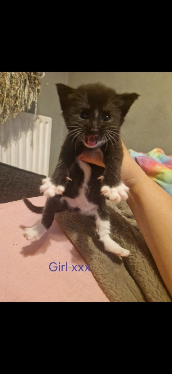 Hello, i have two kittens left from a litter of five, black boy and black and white girl left, all eating and drinking fine, litter trained very playful gorgeous kittens