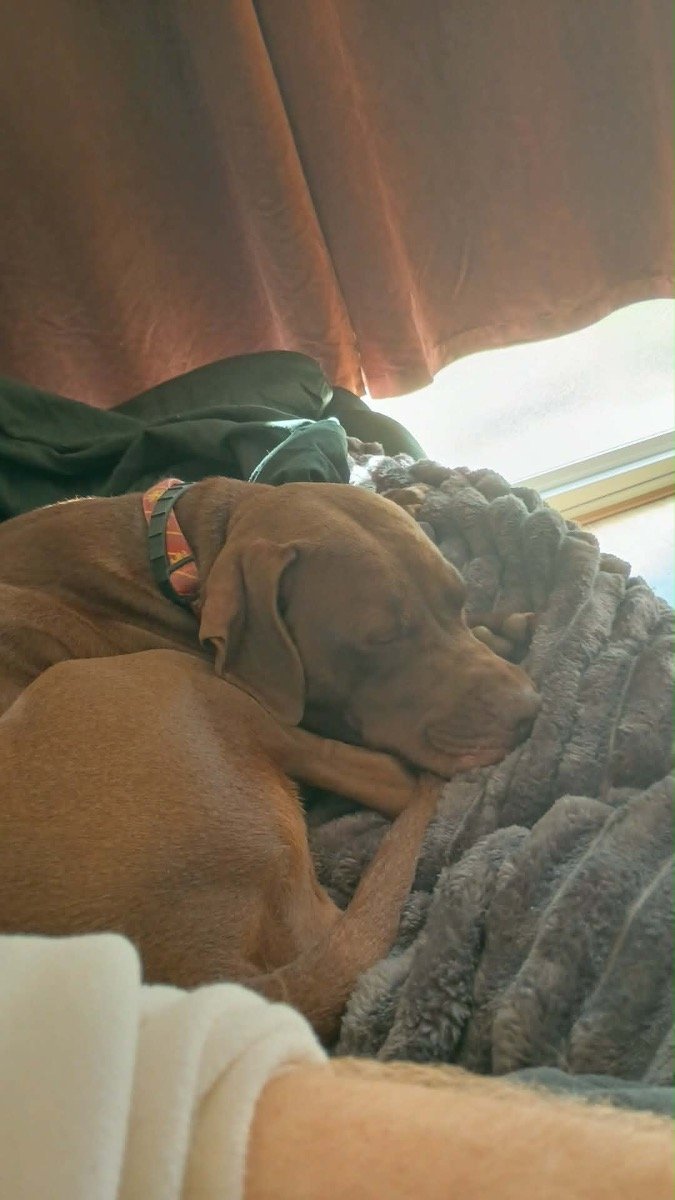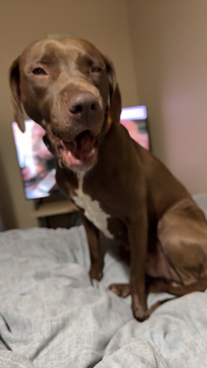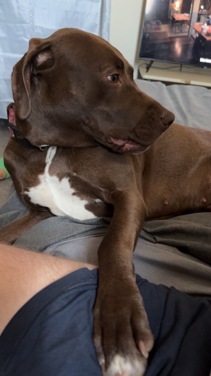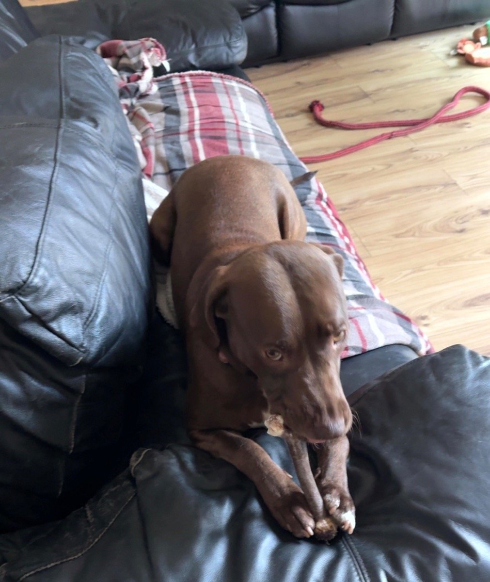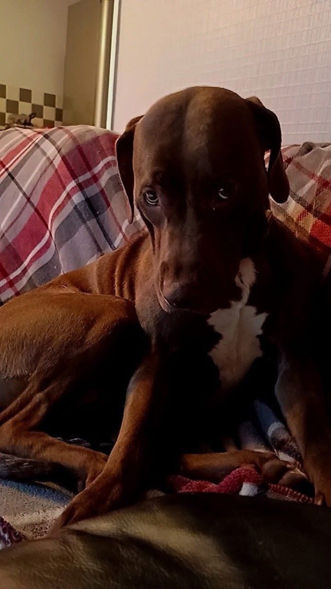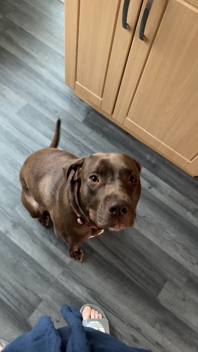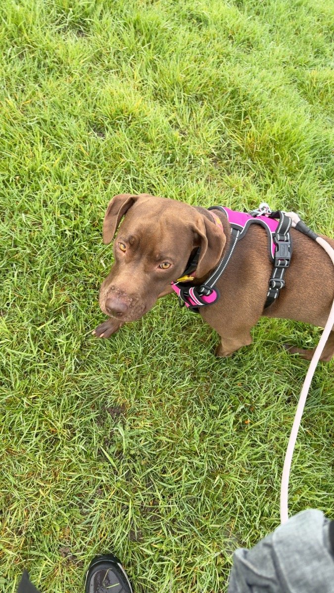 With a very heavy heart, I’m having to rehome my Weimaraner x American staff, Luna. She’s a beautiful dog with an amazing temperament and personality. She’s great with other people and dogs. She must go to a home with someone who can handle strong breeds and are home either a lot or all the time as she can be destructive when not supervised, no young children as she’s strong and very bouncy, I just work too much to give her the training she needs to become an amazing dog. She will come with bowls, lead, harness, toys, crate and bed. If I had more time to be at home I would not be rehoming her as I absolutely love her. But she deserves more attention than I can give her. She isn’t neutered yet, I wormed and flead her a couple of weeks ago, she has vaccinations due in the next couple of months