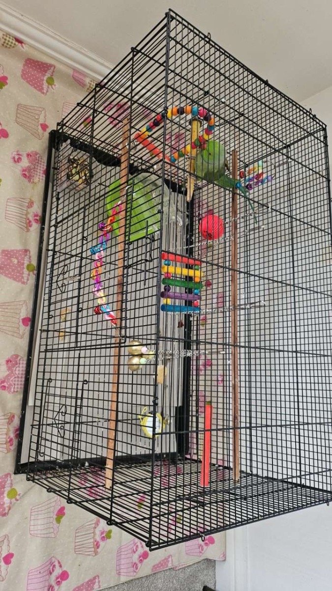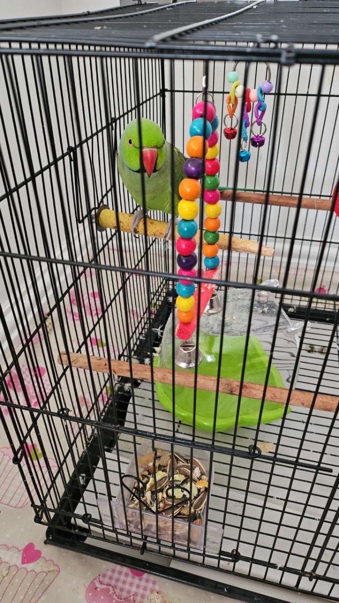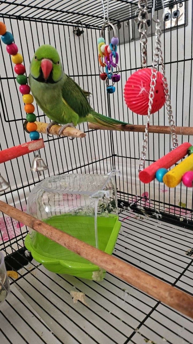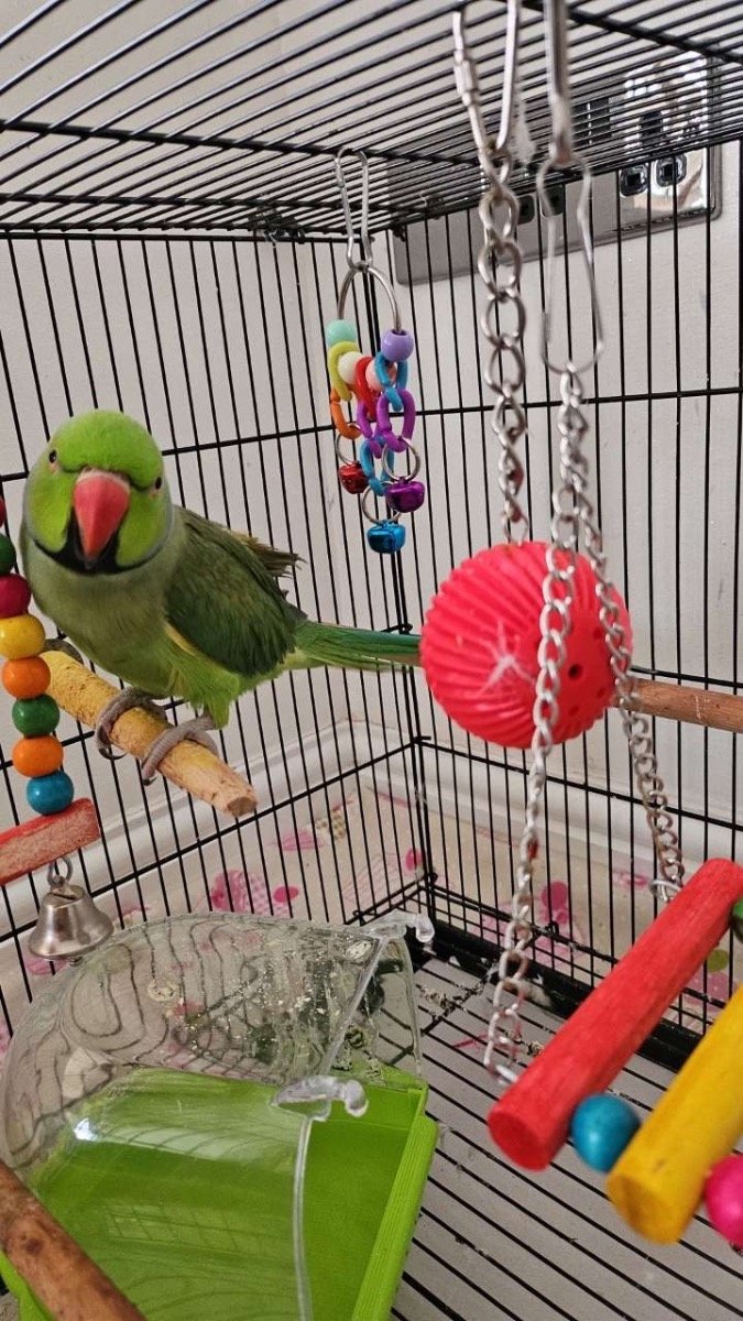 My green ring-necked parakeet; I have had him for around 4-5 months now and he is very friendly, he eats well and is healthy. He gets along with everyone well.