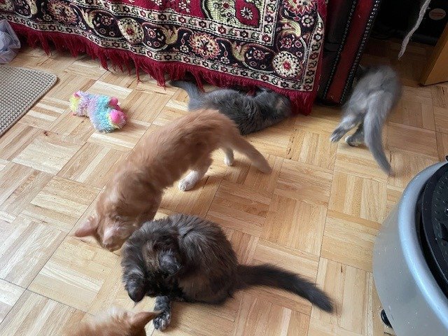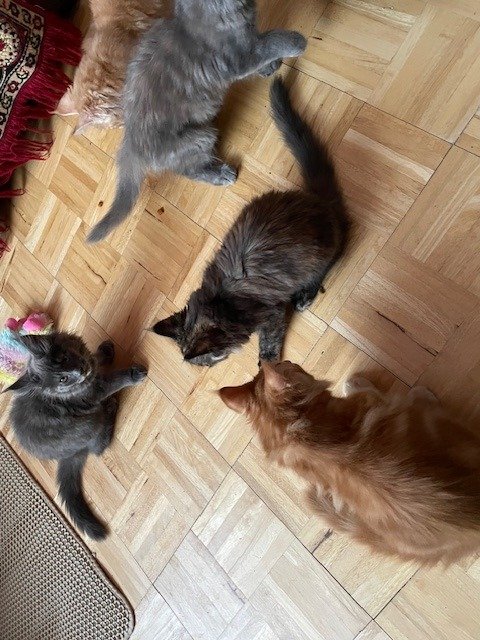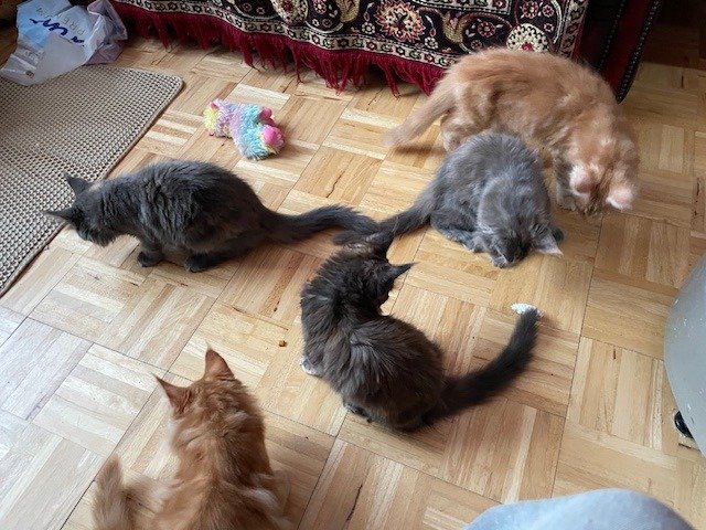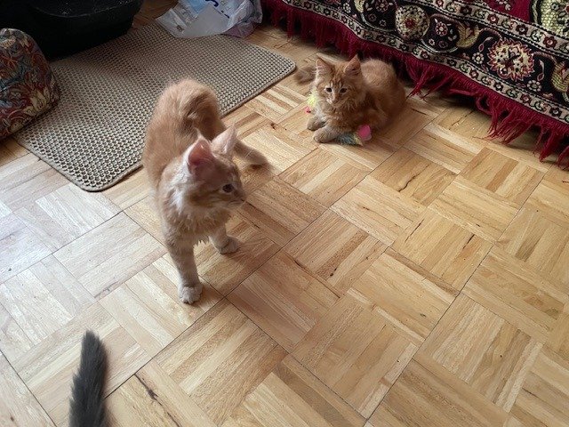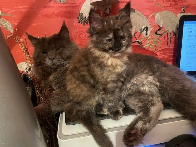 4 PURE BREED MAINE COON KITTENS, 2 GINGER BOYS AND 2 CHARCOAL/BLACK GIRLS. PARENTS ARE OBERON AND PICIE ROSE