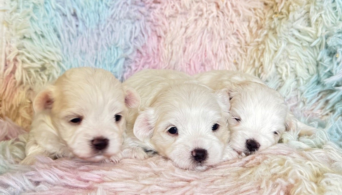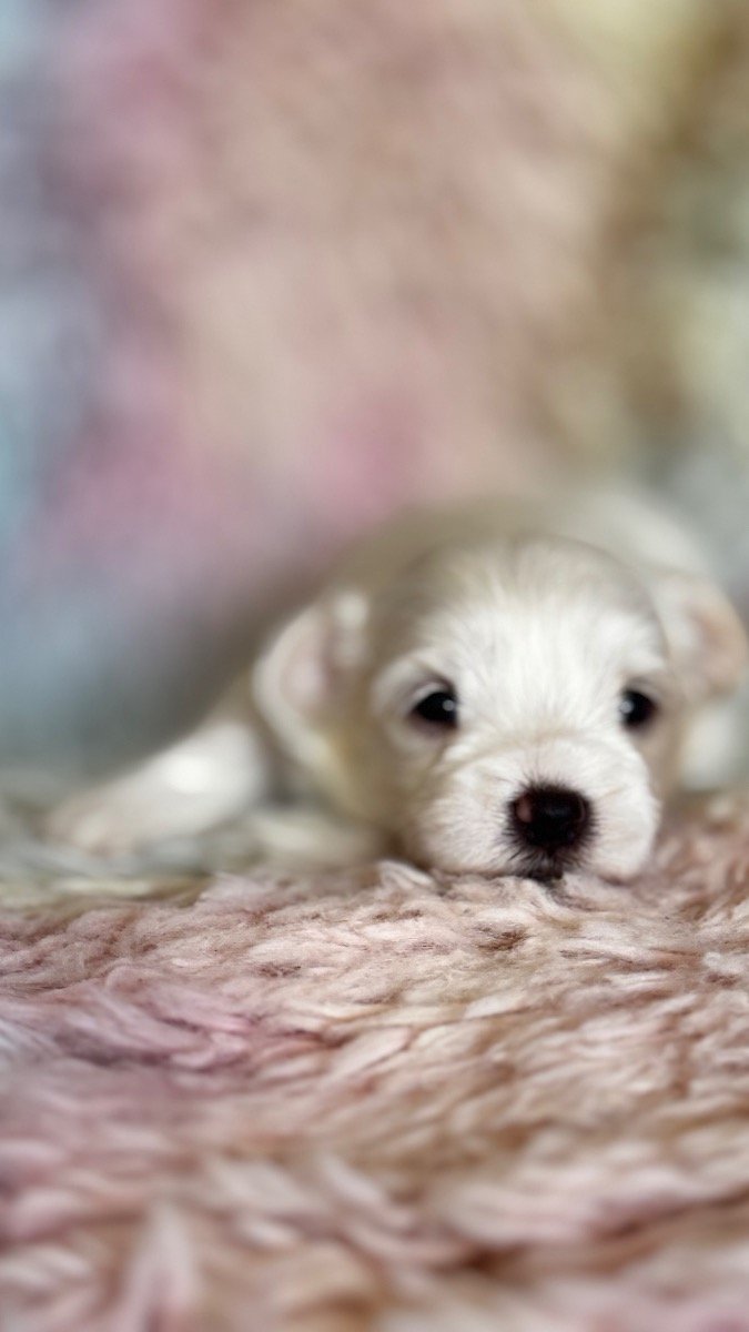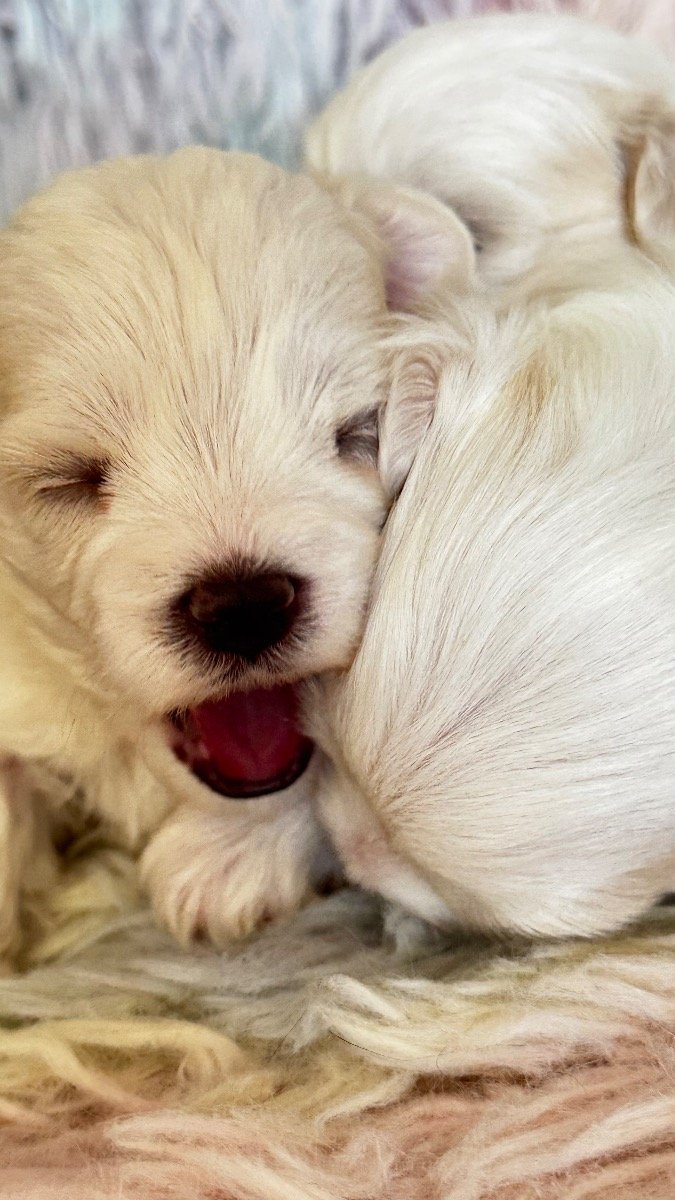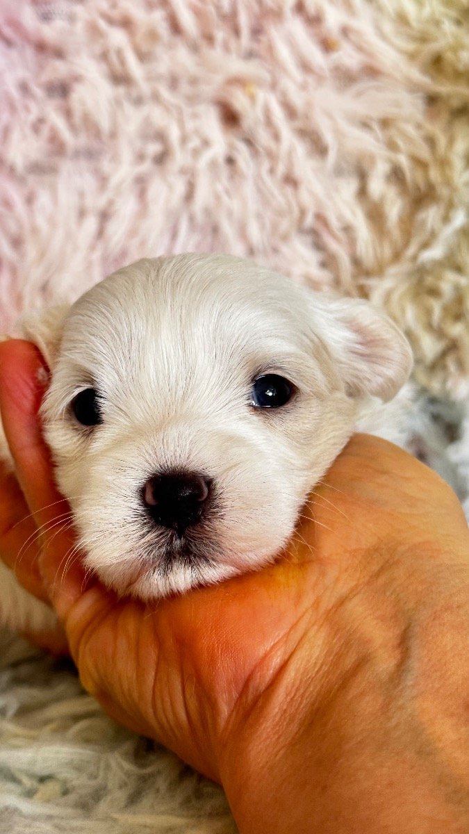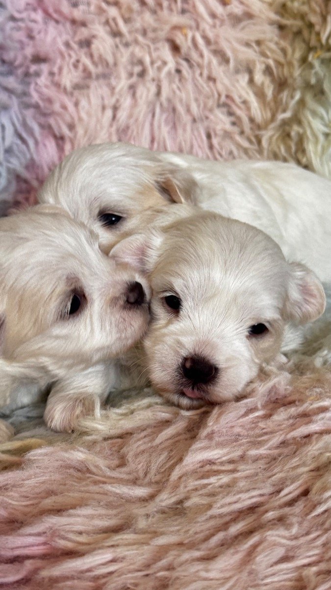 My amazing Maltese girl Milky brought tree mini puppies, they are so beautiful. Milky is so sweet and really good mummy. Puppies Details: • 1 Boys reserved • 2 Girls available • Fully Pedigree • KC Registered • Microchipped • First vaccinations included • Health checked Both patients has been genetically tested and is clear for the following genetic diseases; Degenerative Myelopathy (DM) Glycogen Storage Disease VII (Phosphofructokinase deficiency) Familial Nephropathy (FN(C) Progressive Retinal Atrophy (PRA-PRCD) Exercise-Induced Collapse (EIC) Acral Mutilation Syndrome (AMS) Adult Onset Neuropathy (AON) BVA Hip & Elbow scored Elbows 0/0 Eye Tests BVA Eye tested Unaffected. Gonioscopy (PLA) Grade O. Both parents have exceptional temperaments and are brilliant with people, other dogs and animals of all sizes. The puppies will be ready for their new homes from 6.04.26 They will be KC registered, have received their first vaccination, microchipped, wormed at 2, 5 and 8 weeks and received a flea treatment. Puppies are growing in busy family with kids, cats and another dog, they are well socialised. We are open for visitors to choose and reserve your choice of puppy. First come first serve. Deposit £300 We are looking forward to meet new parents for little angels. Mum is 2.5 kg dad is 2 kg potentially puppies will be around 2-2.5 kg both parents have beautiful silly and thick white coats and so friendly and sweet natures. Only serious families are welcome. This breed is famous for its silky wool – straight and thick, falling to the floor in a peculiar mantle coat. Since the Maltese does not have an undercoat, they do not moult much. You can often hear that non-intensive moulting