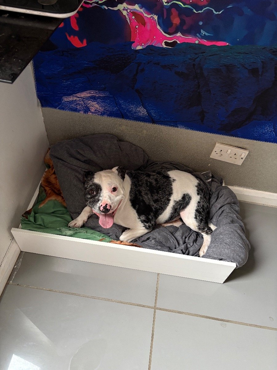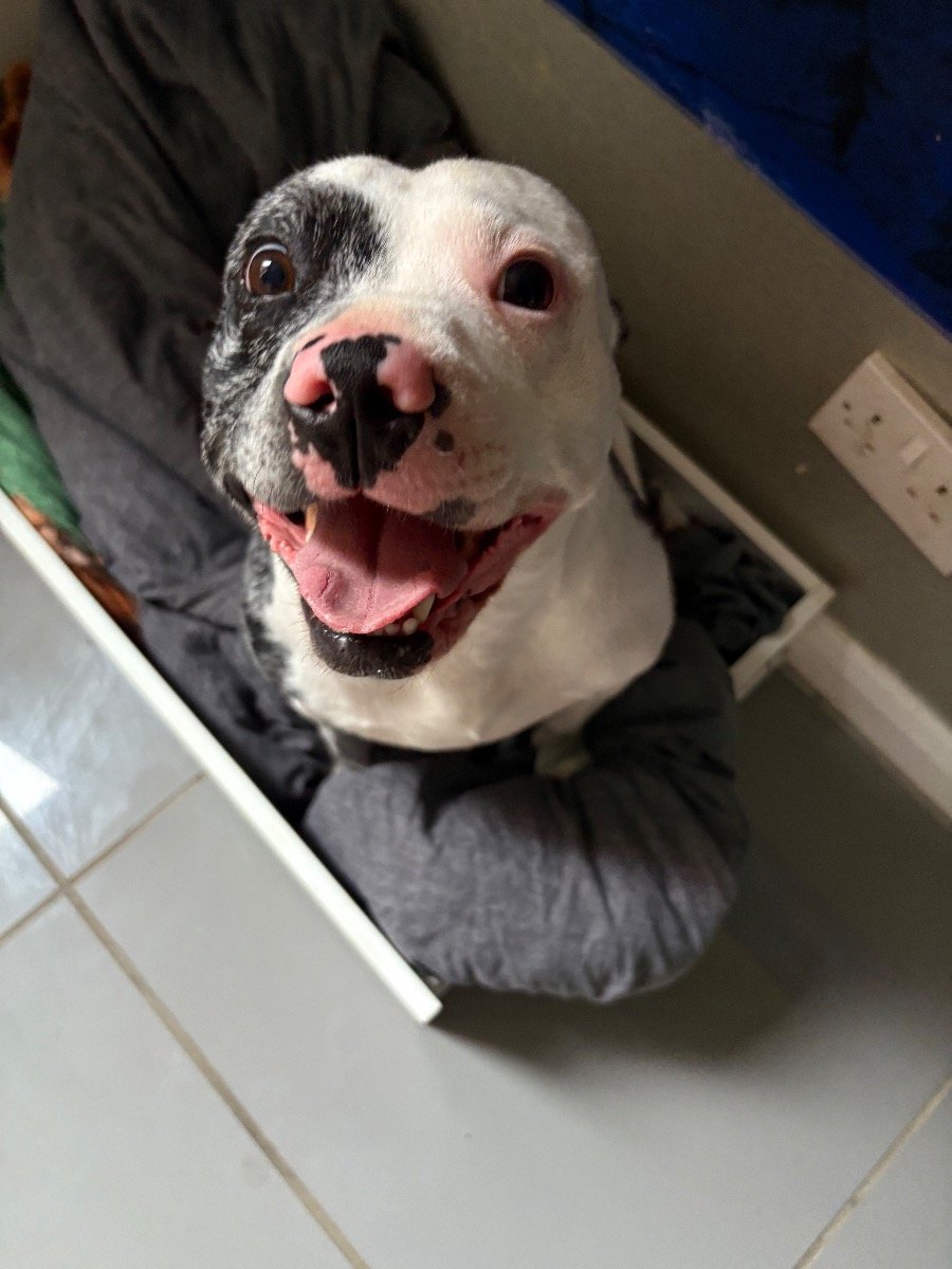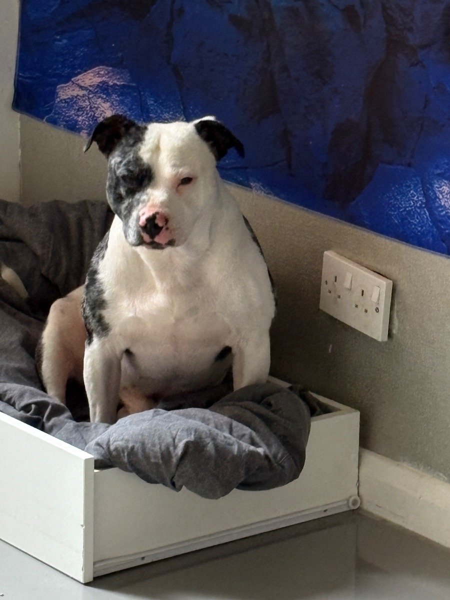 Charlie is a male Staffordshire Bull Terrier with gorgeous colors and a personality that will melt your heart. 🐶💖 He’s super happy, playful, and affectionate, always wanting to be next to people. Charlie loves playing with children, jumping on the trampoline, and having fun all day long!