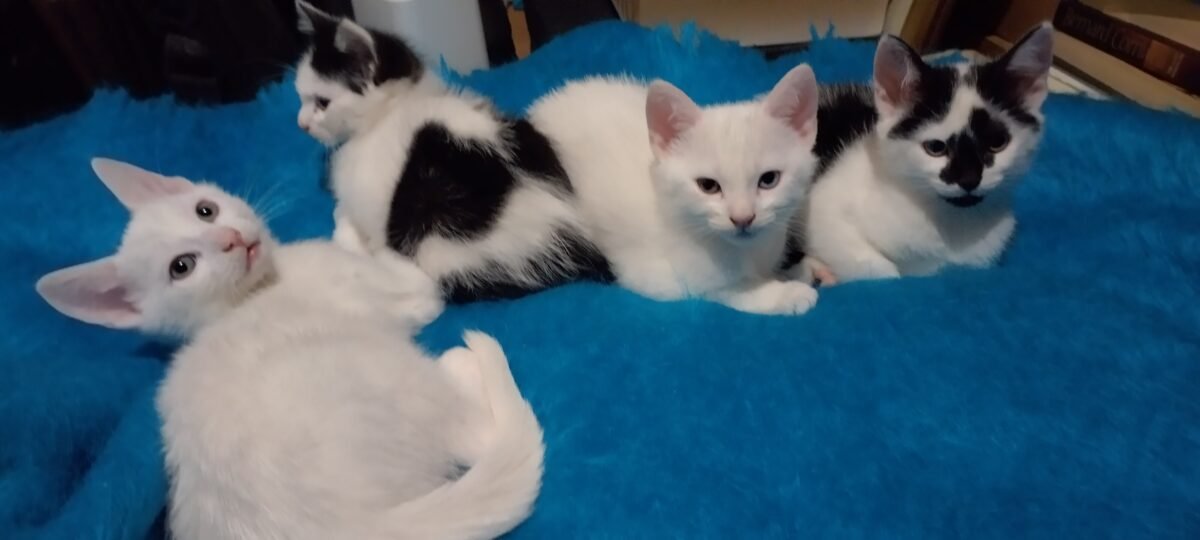 This litter was a present from our cats Mimi and Casper, both of them being doting parents. The kittens are now fully weaned and toilet trained and are ready to go.