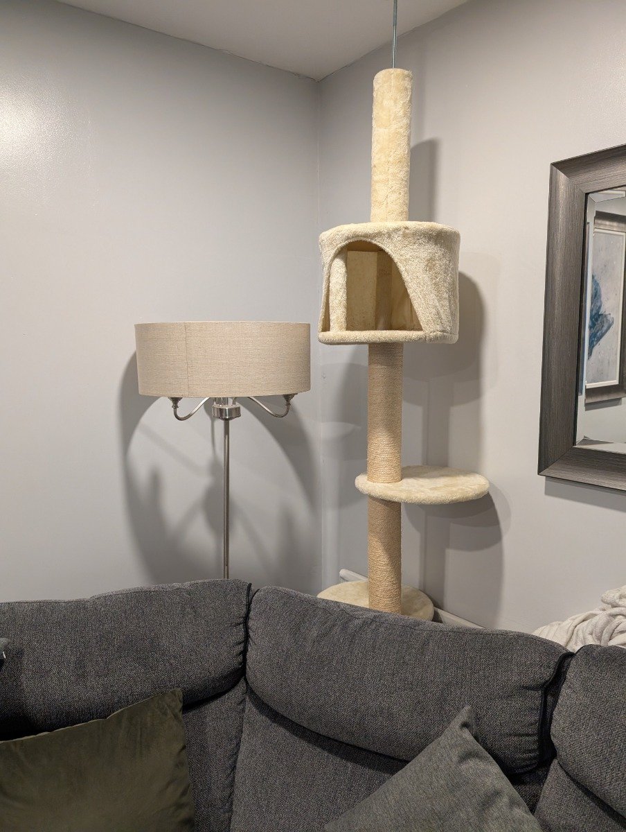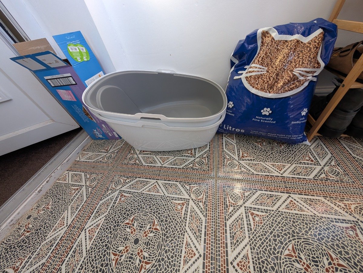 2 hooded litter boxes with scoop. 30 litre cat litter bag. 3 food bowls. Food mat. Large whiskas dry food bag. Felix wet food (box of 40 pouches). Cat carrier. Floor to ceiling cat tree.